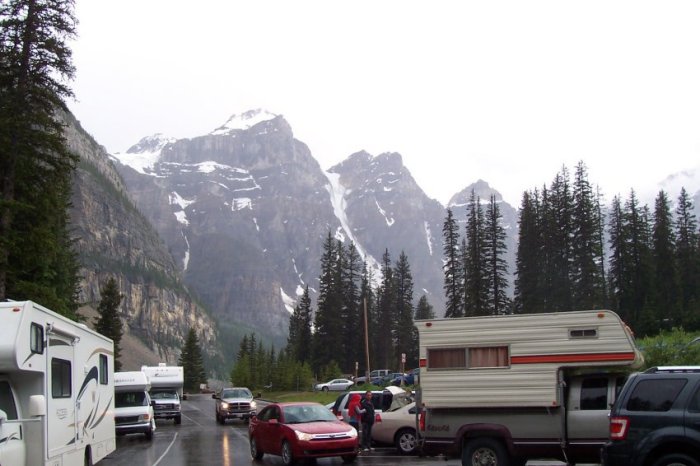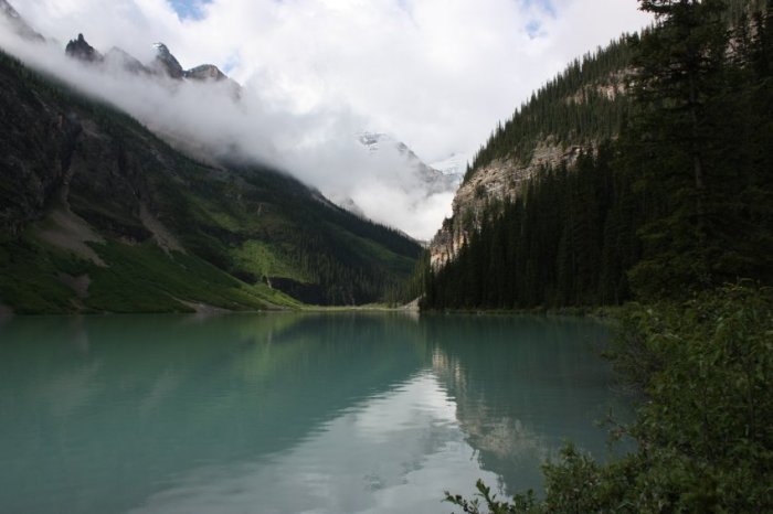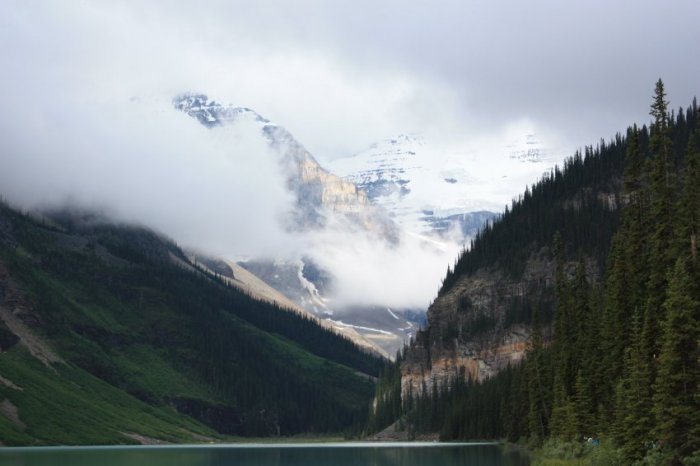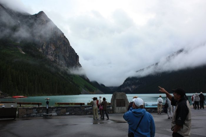 After Moraine Lake, we head to Lake Louise. The clouds are still