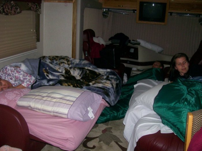Time to go to bed. Estelle and Robert on the left, Marilyne on