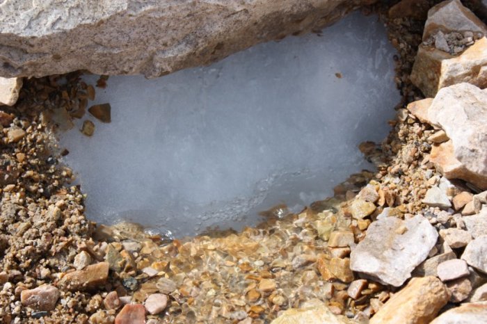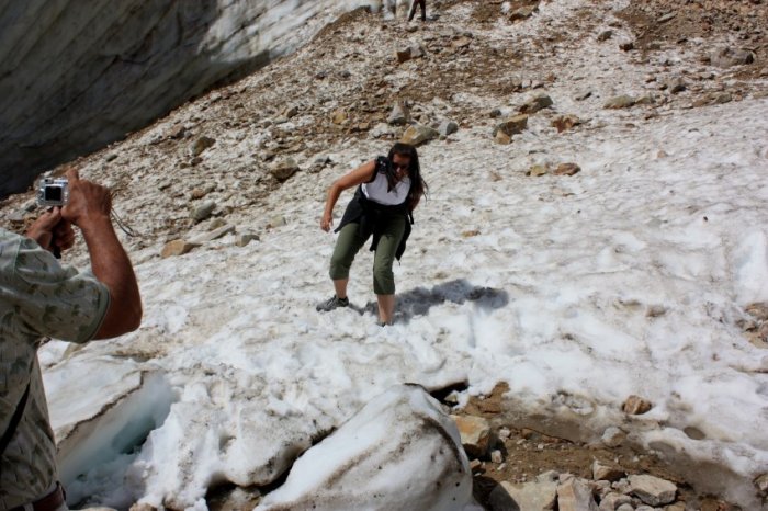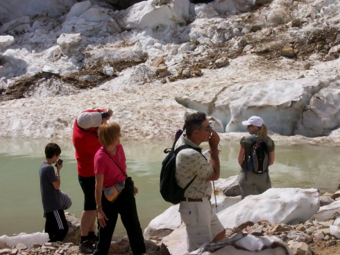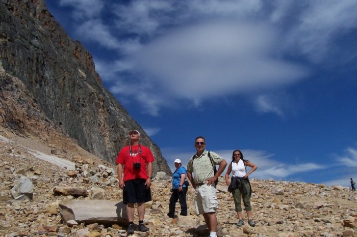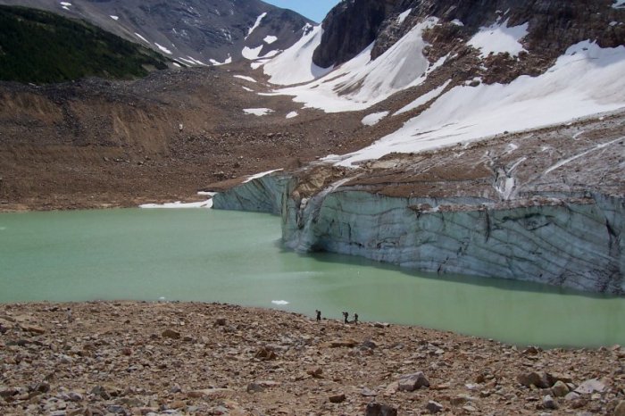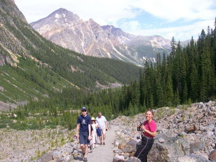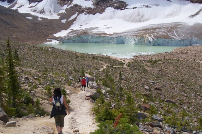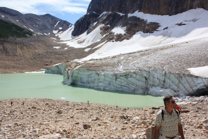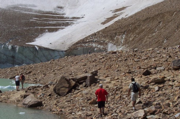 left behind many years ago. The trail takes us high on the moraine. It gives