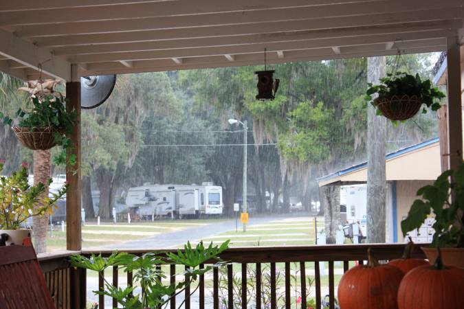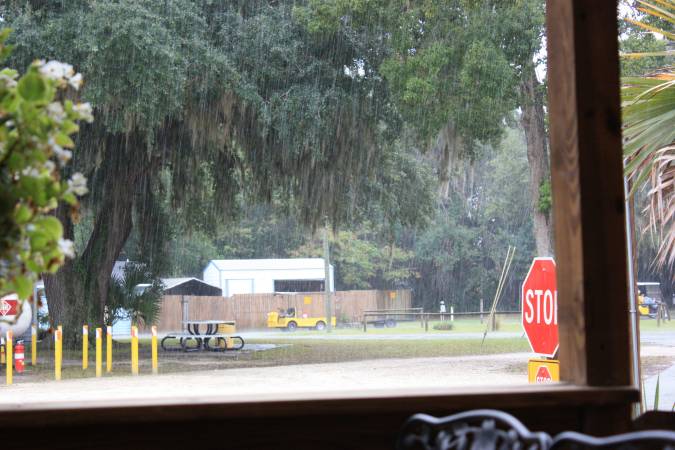 The rain finally stops by 4 pm. Time to hit the hot tub. It