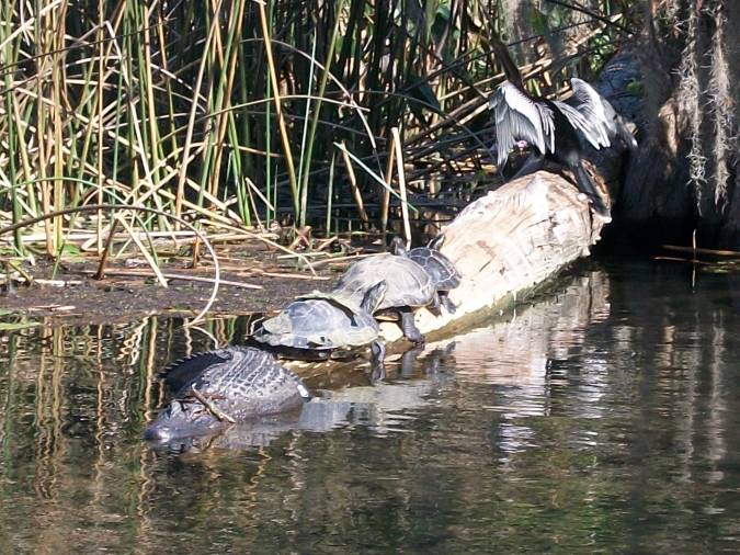Even if the alligator does eat turtles, sometimes they sun themselves