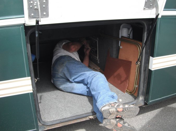 So we had to unhook the car from the motorhome, right in front of RioTinto/Alcan