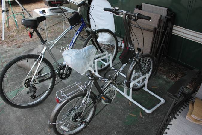 I built a bicycle rack for less then $10.00, all in PVC pipes. I took