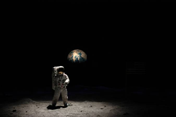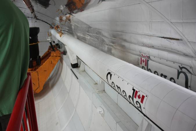 Inside the cargo area of the shuttle with the "Canadarm"...