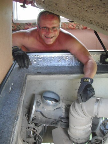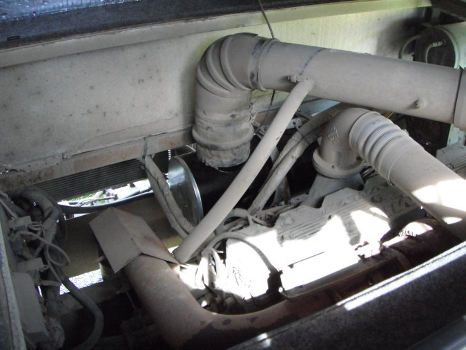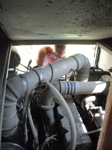 Next job, changing the serpentine belt on the engine. I am installing the belt (a view from the bedroom).