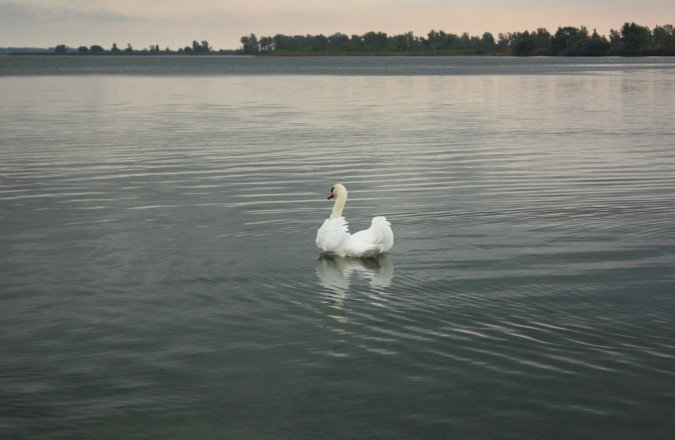 Ontario. About 26 swans spend the summer here on the bay, just raising babies, feeding