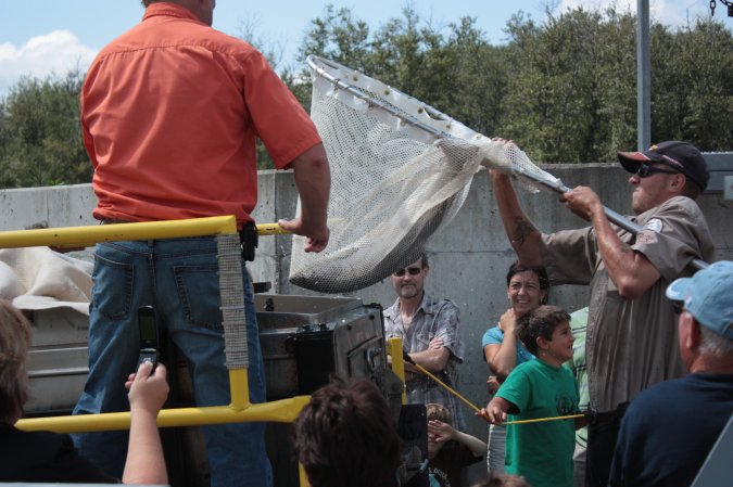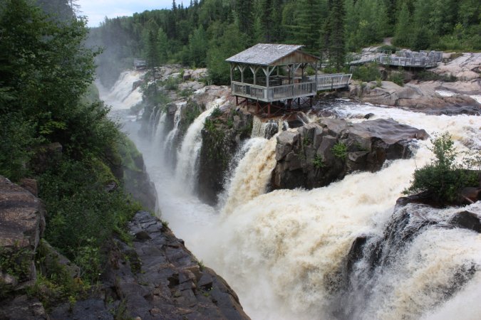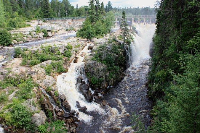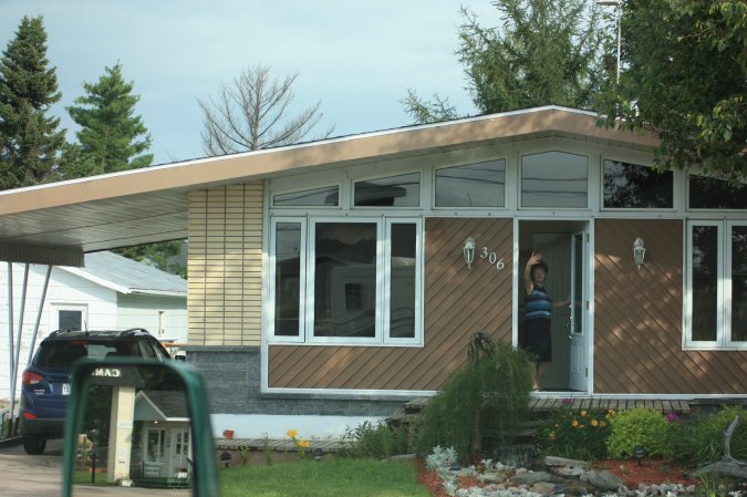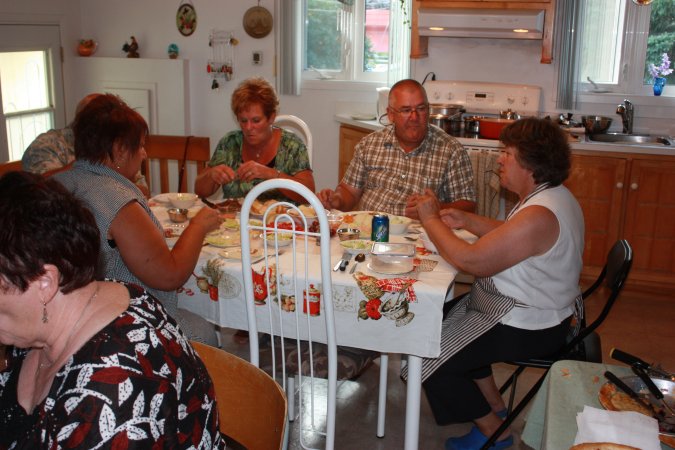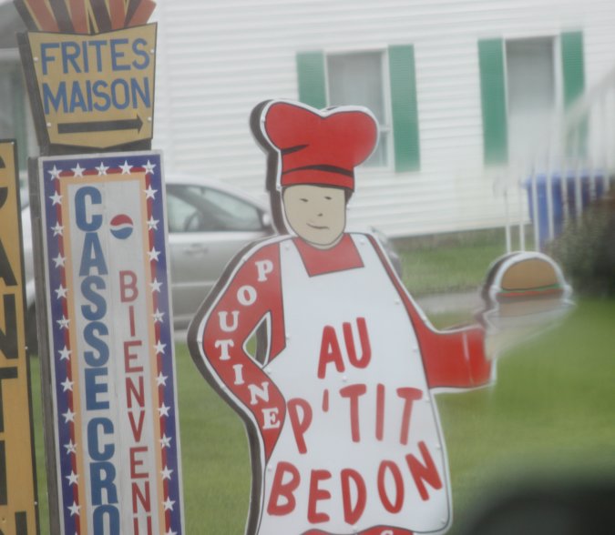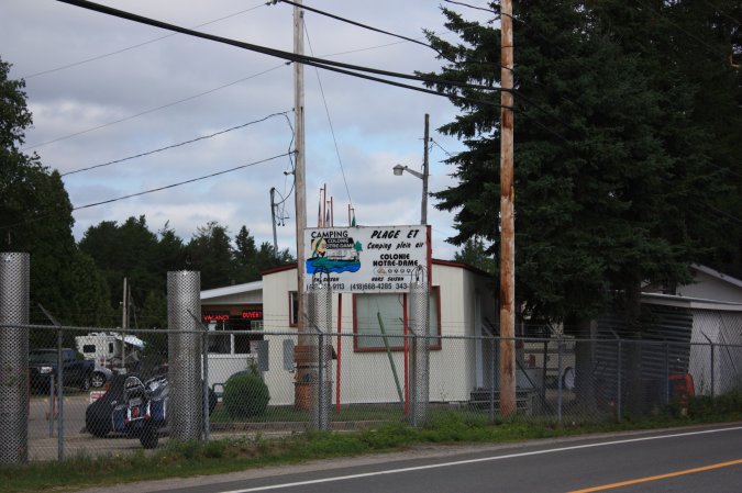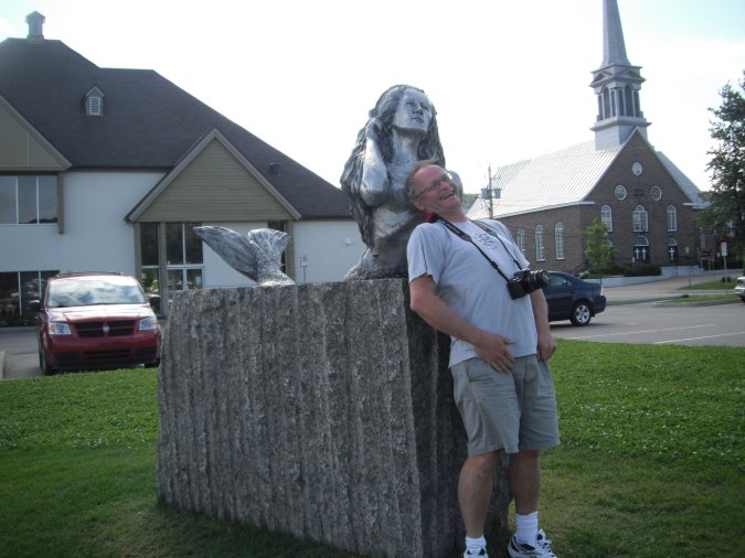 Monday August 1, 2011 Ouff! Festival is over, now some rest and no music until 3 am! Trying to fix the lights on Marc-Henri's trailer. Lots of supervision but still not fixed! ![]() We went for a bike ride to the 9th falls on the Mistassini river. They have lots of bike path around the lake and some branches off like this one. We have to bike 15 klicks to get to the falls but when we had only 4 km to go we got hit by rain. It was OK because the rain was warm. Nice falls and the water was warm. ![]() ![]() ![]() On our way back, we made many stops to pick up blueberries. ![]() ![]() Back at the car we could see some more bad weather coming our way. ![]() A quiet evening at Monique's place, also a great meal, brook trouts. ![]() Tuesday, August 2, 2011 Visiting the "Parc du Vieil Art" or "The Old Art Park" in St-Edmond-les-Plaines, close to Albanel. ![]() ![]() ![]() Uncle Nicolas and Aunt Marie old farm, close to St-Edmond-les-Plaines. Some photos of the homestead. ![]() ![]() ![]() ![]() I have some fond memories of this place. As a kid, I used to chase the chickens in this barn. ![]() ![]() Off to St-Félicien to Gilbert and Margo's place for another big meal. We take Aunt Marie's car to St-Félicien. She is 95 (not on the photo) and just got herself a new car and I got to drive it. A short stop at the falls on our way. ![]() A great meal at Gilbert and Margo, she is the one sitting at the end of the table. ![]() ![]() WOW! Thank you so much for the good time and the great meal we had. On our way home, we stopped for a small light and sound show in St-Félicien but some how the sound did not happen! ![]() The last two weeks have been filled with so much fun and got to renew ties with uncles and aunts we had not seen in over 30 years, some over 40 years. These two week have surpassed my hopes, you were beyond your reputation as very warm and welcoming people. We felt like we just left last week! Thank you so much and hopefully we will not wait another 30 years to come back! Wednesday, August 3, 2011 Moving day again. From Albanel to Alma. Bye bye Monique and thank you so much for welcoming us like you did! ![]() Some of the photos on our way to Alma. ![]() ![]() Short stop at the "Géant du Motoriser" or the "Motorhome Giant" in St-Ambroise to change the propane regulator. As you can see, this is not the first time they change some! ![]() ![]() As I am looking for the campground, I miss a turn because I did not listen to the GPS. So of come the car from the motorhome, right in front of RioTinto/Alcan in Alma and turn around. To my defense, the GPS was confused also! When ever we tow the car behind the motorhome, we have to wash the car because of all the dust and sand that gets in the windows seals. If we don't wash it, we scratch the glass when we open them. ![]() Thursday, August 4, 2011 Yesterday we arrived at the campground "Colonie Notre-Dame", we will be leaving tomorrow. Nice place with a beautiful beach on Lac St-Jean. ![]() ![]() ![]() ![]() Alma is a company town so there is not much to visit. But one of the main attraction is the "Odyssée des Bâtisseurs". A very good guided visit in the main building and a very, very good multi-media show inside the water tower. It is worth a visit. ![]() ![]() ![]() ![]() ![]() ![]() ![]() ![]() ![]() ![]() A view from the water tower. The river is named the "Big Discharge River". ![]() This is the first time we see some yellow Daisy! ![]() I love the bicycle sculpture! ![]() Friday August 5, 2011 On our way to the campground "La Rocaille" in Laterrière a few km south of Chicoutimi. ![]() What a treat to have a very good information center like this one in Chicoutimi. ![]() We will be here in the Saguenay region for a week. Saturday August 6, 2011 The city of Saguenay offers three "Hop-On, Hop-Off, Tourist Bus circuit for only $10 and it is valid for 48 hours. Saguenay is divided into three "boroughs", one is Jonquière, one is La Baie and one is Chicoutimi. The river that goes by the city of Saguenay is also called the Saguenay river. Today we are doing the Jonquière tour. It last one hour and 45 minutes. A very good tour with a very good guide. On top of that, we were only four in the bus. ![]() We ended the day with a play, the "La Fabuleuse Histoire d'un Royaume" or " The amazing story of a Kingdom". We could not take any photos during the play so, only this one at the end of the show. ![]() What a show, over 2 and a half hours of dancing, singing, stories telling about the history of the Saguenay/Lac St-Jean! On a personal note, I would recommend you take the tourist bus tours first as it will kind of prep you for the show with lots of background information about the area. By the way, the show is only in French! Sunday, August 7, 2011 We are back on the tour bus. First, the La Baie tour. Here we are waiting for the tour bus at the information center in Chicoutimi. I guess they call this art! Doesn't do it for me! ![]() ![]() La Baie was badly hit during the great flood of 1996. For those who don't know, here is a short version of what happen in 1996. During the summer of 1996 a storm system stalled over the Saguenay region and dumped more rain in a few days then on a rain forest in a year. Combine this with a somewhat poor management of the hydro-electric dams in the area and you got a BIG flood. Many rivers taking out over 200 houses, roads and more with them. This is what the "Déluge" was. More info here. Anyway, the borough of La Baie decided to commemorate the great flood of 96. They building this great pyramid made out of yield signs, over 3000 of them. At night, when you drive by and turn on your high beam on your car, the pyramid turns bright red. ![]() ![]() The Saguenay river viewed from Chicoutimi. ![]() The tour of La Baie was great. The one for Chicoutimi was not so good. The tour guide was not up to par, or even less the par! Our opinion only! Before supper we had time to visit the "Le Musée de la Petite Maison Blanch