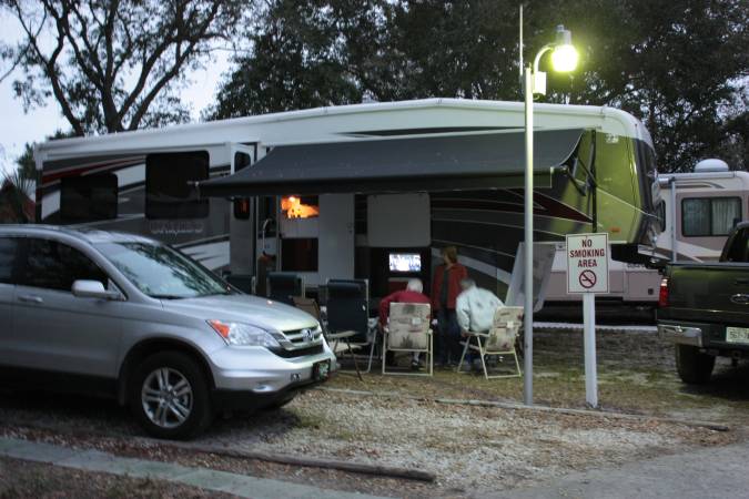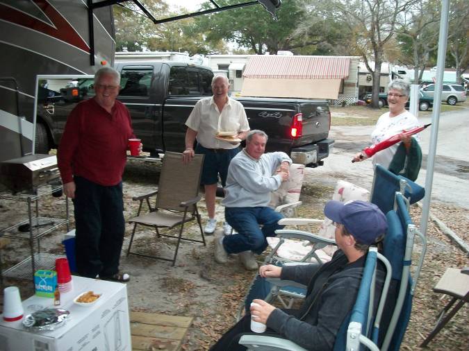 Close by, there is an Armed Forces Museum. With our friends, Keith and Isabelle, we go for a visit. Most of the museum is inside. ![]() The first part is about the first World War and the war in the trenches. Fog, explosions, and gun fire, every thing to make us feel what the soldiers were feeling back then. Very impressive! ![]() In this room, the display is about the Japenese attack on Pearl Harbour. Again, all the fog, noise makes you feel like you are there. ![]() ![]() Next, we end up in WW2 in France. During the liberation of France, a soldier got hung up on the church spire. He watched the battle from up on the church spire. The German captured him but he was liberated shortly after. Now the small village of Sainte-Mère-Église has an effigy of the soldier hanging on the side of the church to remember the American that liberated them from the Nazi. ![]() ![]() Very beautiful museum. On top of that, with a military ID card, you get in free. Wednesday, February 2, 2011 Like a true snowbird, I got myself a leaf blower. ![]() We spent the afternoon with our neighbor and friends June and Pete from North Carolina. Very nice people. ![]() Other campers joined us for a drink, Jody, Doug and Eunice, all Newfoundlanders. We had a great time sharing stories and laughing. ![]() ![]() Another great day... Thursday, February 3, 2011 A warm and cloudy day with a +25 c for today. Keith and Isabelle join us on a visit to Tarpon Springs. The little town of Tarpon Springs was at one time a town of sponge fishermen. Here everything is about sponges and Greek, a nice little town. ![]() ![]() You want some sponges, you got sponges. I never knew there was so many different kind of sponges. Some are soft and some are good to scrub pots. ![]() ![]() Me as a sponge harvester! ![]() Michèle waiting for us to come out of the store. ![]() Too cute! ![]() You can find everything is the stores. Even alligator heads! ![]() The boys with the shark... and the girls with the turtle. ![]() ![]() Here we are going from store to store in Tarpon Springs. ![]() ![]() ![]() ![]() ![]() ![]() Some of the fish you can catch in the Golf of Mexico. ![]() A typical sponge boat. ![]() Throughout the years, Tarpon Springs was the capital of sponges, but bad luck and natural disaster hit the sponge industry. It pretty well disappear. But since the 80's, the harvesting of sponges as picked up and now many people live off this industry. Friday, February 4, 2011 Nice and warm today, +25 C, pool it is... Michèle floating away... ![]() Our neighbor, June and Pete, are returning to North Carolina tomorrow morning. We are having a few drinks with them. ![]() ![]() We finished the evening with the poker game taking place at the club house. I am not good at poker... ![]() Another busy day doing nothing... Saturday and Sunday, February 5 to the 6, 2011 Saturday is a day to catch up on the web page and relaxing. ![]() Today is Super Bowl Sunday! Keith and Isabelle invited us, Bill and Chrissy to watch the Super Bowl at their Fifth Wheel Today is cloudy, but nice with a +17 C. We watched the first quarter outside. We had to move in for the rest of the game because it started to rain. ![]() Today is also Keith's birthday. I won't tell how old he is, but he is at least 16 years older them me! In his left hand, you can see his gift, a (small) bottle of Scotch... ![]() Of course, people stop and chat for a while before the game starts. ![]() Its kick off time... ![]() ![]() To be honest with you, I do not know much about football, but it was fun to be with friends and good food. We had a great time. To finish the evening, we had a cake for Keith's birthday. ![]() Thanks Keith and Isabelle for a great evening! Monday to Wednesday, February 7 to the 9, 2011 Monday is a nice day with a high of +20 C, but from 4 o'clock on, it rained, so watched TV all evening. Tuesday turned out cool and windy with a + 12 C . Here I am giving some pointers about laptop to Isabelle. ![]() Wednesday afternoon and we are off to the dog races with Keith, Isabelle, Bill and Chrissy. This is the first time we go to dog races, we really enjoyed it. Here are our results, we have placed bets for a total of $75.00 and we have "won" $40.00, but we had a great time We could not take photos inside the race track because the flashes from the cameras could startle the dogs and affect the result of a race. ![]() We ended the day with a very good Italian supper. ![]() We had a great week again. Thursday, February 10, 2011 Today is pot luck day at the club house. As usual, we eat too much... Here I am on my way to the pot luck. (Michèle is taking the picture and she is coming to the pot luck too!) ![]() View of the club house at the pot luck dinner. ![]() ![]() Friday, February 11, 2011 A cool day for Florida! We decide to visit the village of Dunedin and their farmer's market. Surprise! We get there and the market is winding down. In Florida, farmer's market close down by noon because the afternoon sun is too hot and it does a good job on the fruits and vegetables. Dunedin is a cute little town. Dunedin is also home of the Toronto Blue Jays spring training camps (and they need a lot of training!) A cute mural in Dunedin. ![]() I found the idea of the window frame in the window of the restaurant pretty cool. I like the look of it. ![]() Saturday was a relax day, mostly because of the cool temperatures. Sunday, February 13, 2011 We have a "friendly" little shuffleboard challenge. ![]() ![]() Lots of fun and I do not remember who won!!! (I think we did!!!) Monday, February 14, 2011 Valentine day! The campers association organized a Valentine lunch a the restaurant Island Way. Very nice restaurant. ![]() To reduce the cost and the serving time, we had 3 choices for the main course, fish, chicken and steak. Again to make things smoother, we had a card with all had our name and a little sticker with our choice on it. I had the celery because of my allergies to celery and remind the 