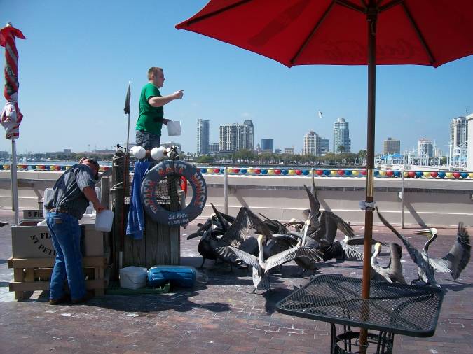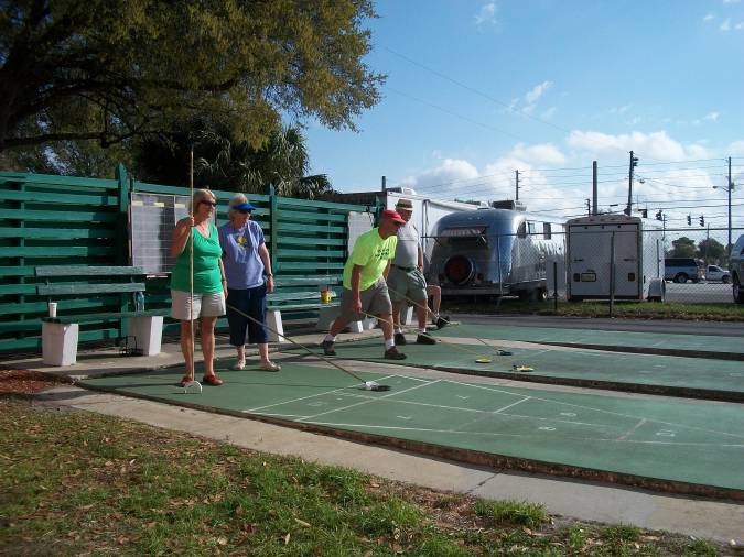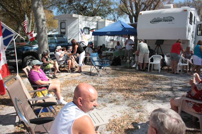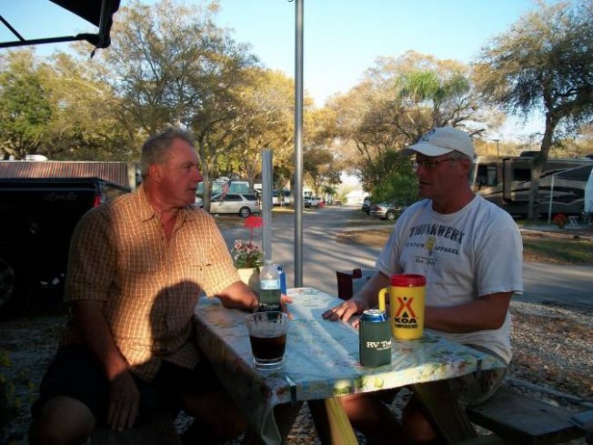 A little shopping and I bought myself a shuffleboard stick. I guess I am really becoming a snowbird. ![]() Relaxing with a good book and the sun... ![]() After supper, we go the a local auction. No purchase from us but our friends did... ![]() ![]() Thursday, February 7, 2011 Another busy day. In the afternoon, Michèle went to the store to try on some dresses she will be wearing for the fashion show. ![]() ![]() I use this time to paint the the TV cabinet and to install the TV.. We chose the color black for inside the cabinet because once the TV is installed, the back of the cabinet will kind of disappear, giving a nice finish around the TV. Here is the final result. ![]() ![]() ![]() After all this hard work, pool time... Temperature at +25 C and the water at +28 C. ![]() Our neighbor, Carol and Morris, invited us for supper, nothing less then steaks... A very good supper and again we have meet fantastic people. Thanks Carol and Morris. ![]() ![]() ![]() ![]() A friend sent me an e-mail with the following statement and I think it really fit our lifestyle right now. "If you can't add days to your life, you can add life to your days that you have left..." Friday and Saturday, February 18 and 19, 2011 Friday is an easy day. Shuffleboard after the campground's breakfast. ![]() Some more photos of the shuffleboard game. Isabelle on the first photo and myself with Keith on the next one. ![]() ![]() Michèle ended Friday at the poker table and won (again), a BIG $12.00. WOW! Saturday evening is dance time. The theme for the dance is "Your Favorite Sports Team". Here we are with our squadrons hockey jerseys. Michèle with her 441 Sqn and me with my 10 FTTS. ![]() A very nice evening! Sunday, February 20, 2011 A busy day, again! Today is the Daytona 500 race plus an auction sale at the campground after supper. I got the TV, I ordered from Walmart, it is the same one as inside and I got it for $20 cheaper. Today being the Daytona 500 race, I invited some friends over to watch the race. Chrissy, Bill and Isabelle are with us, but Keith is gone back to Ontario for business. A very nice afternoon with friends watching the race. Bill and Chrissy brought the food for supper, hot dogs made with deer sausages. Hummm ! So good. ![]() ![]() As I mentioned before, the campground had an auction to raise some money for the camper's association. All the stuff for sale was donated by campers. Lots of good stuff and lots of not so good stuff, for us... ![]() ![]() The association ended up with a little over $300.00 from the auction. Monday, February 21, 2011 Bill had mentioned he was going to the opening of the spring training camp for the New York Yankees in Tampa. So we went with them. The Steinbrenner stadium is about 15 minutes away from the campground. Baseball does not really interest me but hey, why not go and see what this is all about. It was interesting to watch and I actually liked it. The stadium can hold more then 11,000 fans and is very big for a amateur like me. ![]() The three girls, from L to R, Isabelle, Michèle and Chrissy. ![]() The warm ups... A little more the $200,000,000.00 worth of pay on the field I am told. ![]() The next two photos are a little funny... Yes, Michèle has another man in her life, he has a blue t-shirt. ![]() Corrected version, Bill and Chrissy at the front and Michèle and ME behind! ![]() Funny how the photo turned out... Some photos of the training session. ![]() ![]() Across the street there is an even bigger stadium, the Raymond James Stadium. ![]() Can't believe I am in a baseball stadium!!! But looking cool... ![]() We spent a few hours watching and visiting the stadium. Thanks Bill and Chrissy for inviting us, we had fun. Wednesday, February 23, 2011 A big day for the ladies of the campground. Fashion show for and by the ladies. Michèle is one of the models... But lets start with the preparations, by the way, men were not invited! ![]() ![]() A lot of work went into the preparations. Very Nice! ![]() ![]() Michèle on the runway... ![]() ![]() Here is a look at all the models for the fashion show. ![]() Michèle really enjoyed her experience as a model. Humm a career in the fashion world with lots of money? And me during that time? I built a bicycle rack for less then $10.00, all in PVC pipes. I took the idea from a neighbor. ![]() Thursday,February 24, 2011 Busy day ahead of us today. We are going to St-Petersburg, also nick named as St-Pete. St-Pete is a pretty small city with lots of activities. The first place we stop is at "The Pier". The Pier was first built in 1889 and was rebuilt many times over the years. The reversed pyramid opened its doors in 1973. So here we are at the entrance of the pier. Right next to the pier is this lovely, white sanded, beach right in the city. ![]() ![]() We hate to walk 1500 feet to get to the end of the pier and the reversed pyramid. The road on the pier is very well laid out for the cars and the pedestrians. ![]() Birds, you want birds? You got birds at the pier. From the pelican (not so pretty) to the Great Blue Heron (real pretty). One of the fisherman gave a fish to the bird so we could take photos of the bird. Thanks! ![]() ![]() At the end of the pier watching boat go by and taking photos. ![]() ![]() We are told that they have been feeding the pelicans at this spot since 1926, But they do clean the area every night... ![]() Lots of stuff to see in the pyramid. Many stores, an aquarium restaurants and more... ![]() On the top floor you have an observation deck. A great view of St-Pete and ... us! ![]() ![]() ![]() ![]() We use the elevator to go back down because we do not want to miss the trolley. ![]() Here is our trolley coming in. For $0.25 you get a 20 minutes guided tour of the downtown area of St-Pete. WOW, can't beat that! ![]() ![]() The Renaissance Venoy Resort. For over 85 years, with many ups and downs, the Venoy Resort is now a very beautiful hotel with over 350 rooms. You can visit the lobby and the 