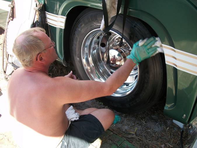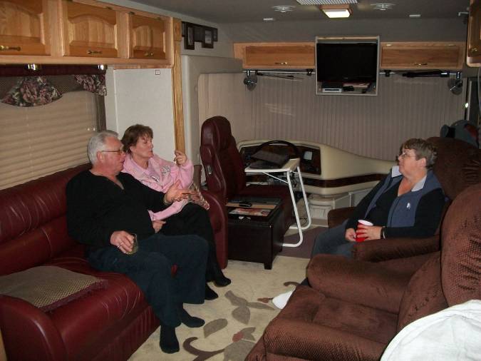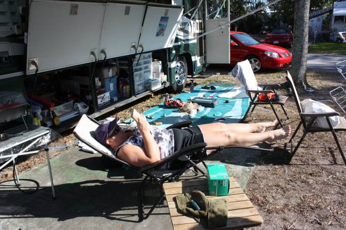Saturday and Sunday, January 15 and 16 2011 We spent the day reading, biking and having some nice meals. ![]() Our bike ride took us in a mobile home park close to our campground. ![]() ![]() I love this mail box. ![]() Monday thru Wednesday, January 17 to the 19, 2011 Monday turns out to be a rainy day. ![]() Why not got to the movies. Here, the movie theatres open before lunch and runs until late in the evening, 7 days a week. In addition, it costs only $4.00 in the afternoon, WOW! ![]() A few weeks back I ordered a TV from WalMart. Well, I actually ordered it from the WalMart web site with the option to "Ship-to-Store". Free delivery to a store near you. Cannot go wrong with that and on top of that, they have more stuff online that you cannot get at the store. Tuesday morning we got a call from WalMart to let us know our TV has arrived. Before lunch, we got our brand new TV, a Viore, LCD 1080 p LED 24 inch for our living room. Let the demolition begin... ![]() With the old TV out, I had to install a plywood to mount the bracket for the TV. ![]() The TV works ! The trimming will be installed within the next week or so. Can't do everything all at once, can I ? ![]() When the whole project will be completed, I will show you pictures. All this work was done in a 90 F temperature... ![]() That evening we went to the campground bingo. I won 3 times and Michèle once. Out of 20 games, our table won 7. We came out with a big $32.00 ![]() After our Wednesday free breakfast at the clubhouse, we played a few games of Bocce Ball. ![]() We spent the afternoon looking for the right trimming for the new TV. Got lost a few times, even with the GPS. Especially if you do not know the exact name or street where the store is located. However, we made it and got some nice oak trimming. Thursday January 20, 2011 A hot day today, so why not spend some time at the pool The water is at +29 C. The only problem is that by 3 pm the pool area is in the shade and it makes it kind of cold. But we are not complaining... ![]() ![]() Friday January 21, 2011 Another rainy day. After breakfast at the club house, we are on our way to Camping World for some RV stuff shopping. Only one photo today! ![]() We played poker in the evening, Michèle won second place and we had a good time. Saturday January 22, 2011 Another cool day, +14 C with a wind from the north, not nice outside. Some more shopping at WalMart. WOW a case of 24 beer for $13.95, can't beat that! Back at the campground we went for a walk and saw this little "flag". It reminded us of one of our friends in Cold Lake, Hello Claudette! ![]() Here is the motorhome in the center of the photo. Michèle cleaning up on the book that we have. ![]() ![]() Saturday evening we went to the dance at the club house. The theme was "hard times". Here we are with our friends. Left to right, Keith, Isabelle, Michèle, Chrissy, Bill, Dottie and Gerry. The photo on the right is for the person who won the best costume. ![]() ![]() We ended the evening with a drink with our friends Keith and Isabelle. ![]() A very nice evening with friends. Sunday was a "do nothing" day. Monday January 24, 2011 Monday was almost a do nothing day, but Shuffleboard got in the way. Half the people were from Newfoundland! ![]() The day ended with some more poker... Two of our competitor, Chris and Bill. Michèle finished second place again... ![]() Tuesday and Wednesday, January 25 and 26, 2011 Nothing spectacular other then I decided to polish the wheels on the motorhome. I had bought a polishing kit at the RV show in Tampa, so here we go... Tuesday, front right wheel... Two and half hours later, it is shinny. ![]() ![]() A lot more work than I expected, but I like the way the wheel looks. Wednesday... Rear right wheel... On the left you can see the difference between the bottom and the side of the wheel. The photo on the right is the finished product. ![]() ![]() The back wheel required a lot more time. Note to myself: polish more often so you do not spend so long every time on polishing. I am not looking forward to do the left hand side wheel, they are in worst shape the right side! Thursday to Sunday, January 27 to the 30th, 2011 Warm weather is back. Not much to talk about other then everyday life. At the campground we have 3 breakfast a week in the club house, two of them are free. Friday morning, we also have shuffleboard games. Here you see Howard, Eunice, Michèle and Al. ![]() We needed a little bit of a fat pill, so here we are at a wing place with our friends from the campground. Left to right, myself, Chrissy and Bill from New Work state, Keith and Isabelle from Ontario and Michèle taking the picture... They are really nice people. ![]() One of my many projects is to polish the wheels of the motorhome. After 4 days, here is the finished product... Why 4 days? Just because I did one a day, more then one would be like work and I won't let that happen... ![]() ![]() ![]() ![]() The supervisor at work... ![]() I am very happy with the results for the wheels. I will not let them get as bad as they were. I will do them again after each every second time we move. Monday, January 31, 2011 Today, we are on our way to visit an orange and citrus farm. The Mixon Fruit Farms. Our our way to the farm, we must go over Tampa bay. We take the Sunshine Skyway Bridge. Pretty impressive bridge. ![]() At the farm... ![]() We start the visit with a guided tour of the farm. A one hour tour, we can't wait to learn all about oranges and citrus. ![]() ![]() The first 10 minutes were great. We learn a lot about the trees and what they used to fight frost. Like this diesel stove that was used in the 60s and 70s. ![]() To increase the crops, they graft different kind of branches so the tree can grow more then one kind of orange. This allows a more efficient use of the tree and also more crops. Here we see one tree with different oranges. ![]() More oranges... ![]() ![]() ![]() No, they are not baby oranges. They are a 