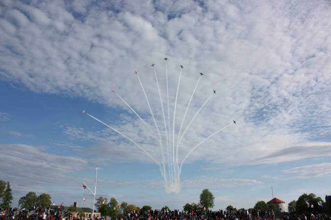 Thursday May 12 to Wednesday 18, 2011 A lazy week doing nothing! Of course, the paperwork continues this week, this time to get the windshield changed on the motorhome. And it is not over yet! We also took the time to visit the village of Frankford and the area. Like in many area of Canada, the railroad tracks were removed many years ago. Many communities along the railroad decided to convert the old rail bed to multi-use trails. Here we go with our bicycles on the Frankford part of the trail. ![]() ![]() You never know what you are going to see when you take a new trail. A railroad around a flowerbed! Kind of neat and of course a fallen tree, the results of the big wind we got a few week ago. ![]() ![]() ![]() ![]() A part not done yet! ![]() With all the rain we got in the past month, the water level is not too high like in other parts of Canada. ![]() Odette, Onyx and Alix came over for a nice meal, a raclette! We had a good time! ![]() Later in the week, we decided to take a walk in Frankford just to see what kind of stores are in here. A small river going into the Trent River. ![]() ![]() Our finding, Frankford is more like a place for people who work outside the village. As far a store goes, just the bare minimum but with nice people. Thursday and Friday May 19 and 20th, 2011 Two very busy days. Our friends Dave and Shelley from Cold Lake, have a son (Jeffrey) that is graduating from the Royal Military College of Canada in Kingston (RMC) on Friday. But first, Thursday, we are on our way to the Sunset Ceremony at the RMC. Here, we are stuck in traffic for over half an hour because of construction. ![]() As I was saying, Dave and Shelley invited us to the Sunset Ceremony and the Commissioning Parade of Jeffrey. The Sunset Ceremony goes back to the 18th century and is an old British military tradition. I will not get into the details of it here but if you click here, you will get all the information you need on the Sunset Ceremony. ![]() Michèle with the Tower of Martello built in 1845 and the city of Kingston in the background. Me, looking the other way, is where the Saint-Lawrence and the Rideau Canal meet. ![]() ![]() The Mackenzie building overlooks the parade square where the Sunset Ceremony and the Commissioning Parade will take place. ![]() At the early part of the Sunset Ceremony, we had the Snowbirds and the SkyHawks doing a little show for us. A very nice performance by the SkyHawks. ![]() ![]() ![]() A very good parade followed by a "battle" between the "bad guys" and the "good guys" (in red!). Lots of fun to watch! ![]() ![]() We were treated to other performance but because of the darkness I could not take very good photos. But I have to include this one, the piper is at the top of the clock tower on the Mackenzie building. When the RMC band played the bagpipes, it was good but when the lone piper started to play after, it was great. It send chills down everybody's spine... Just Beautiful! ![]() If you are ever in the Kingston area at the end of May, just check if the Sunset Ceremony is taking place and go have a look. It is open to everyone, not just families member but all the publics, and it is free! Lets move on to Friday and the Commissioning Parade. The official bit. But first, I am told that Jeffrey and a few friends "built" this "Bubble Canon" earlier in the year but were told by a senior officer to "get-rid-of-it". But they forgot to tell them where! So it ended up at the entrance of the base. They followed orders. (Harmless fun!) ![]() Dave is very proud of his son Jeffrey! ![]() One of the best parade we have seen so far. ![]() Dave's brother came down from Ottawa for the parade, Fred and is wife Joanne. ![]() Jeffrey getting his commission from General Natynczyk, Chief of defense Staff. ![]() Shelley (mom) and Samantha (sister), also proud of Jeffrey. ![]() The graduates with swords saluting the first year cadets as they return the riffles. After, the Graduates are on there way to the Arch. ![]() ![]() There is only two time a cadets can walk under the Arch. First when the cadets come in the RMC and the second time, when the cadets gets his/her commission and graduates from RMC. ![]() We are happy to have come to both occasion, the Sunset Ceremony and the Commissioning Parade of Jeffrey. It is something to watch! Saturday to Wednesday May 21 to 25, 2011 The little village where we are now, Frankford, has a River Festival this week end. Saturday we spent... an hour .... but we had seen everything after 20 minutes!!! Small but good for the kids. Me and my Caddy? ![]() ![]() A baby Alpacas, only 3 months old. ![]() Sunday morning I went for a 21 km bike ride. What a nice area the Trent River. I do not know what kind of bird of pray is in the nest but it was big.... ![]() On my way back, I followed the Trent river and stopped at one of the many locks. This one in Glenn Miller. ![]() Monday is a "not sure" kind of day, Rain or Sun? Ended up being cloudy! Off I go to the Sager Conservation Area with its 30 meters high tower. This is the highest point in the region. ![]() ![]() Good view! ![]() ![]() I think it is time some church moved to the 21st century and update the messages they are trying to give us! ![]() Wednesday morning I did another little bike ride. This time I went to the village of Stirling, about 20 klicks return. Good ride and I love this painting to commemorate remembrance day. ![]() Me and Michèle spent the afternoon visiting the area around Campbellford. Here we are the the Healy's Falls. ![]() ![]() This is part of the Trent-Severn Waterway. It is 386 Km long. It stretches across Central Ontario, from the Bay of Quinte (Trenton) to Georgian Bay (Port Severn). Nice falls but hard to find without any signs directing you to the falls. ![]() ![]() We continues our "cruising" to the Ferris Provincial Park with its suspended bridge, 92 m long and 12 m above the Trent River. ![]() ![]() From the suspended bridge we can see the Ranney Falls. ![]() ![](