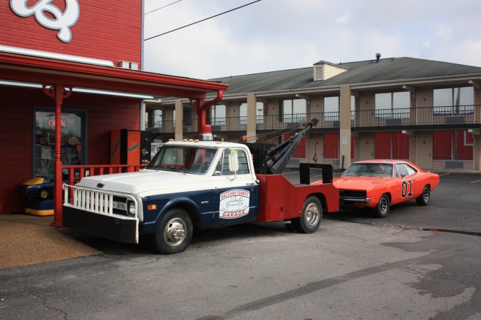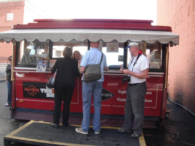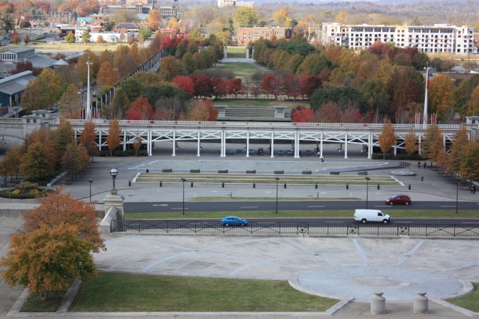 Tuesday November 1, 2011 We are leaving Belleville and going south! Our plan is to go as far as Windsor and spend the night at a Walmart, then cross over to the States in the morning. ![]() Between Trenton and Toronto the 401 has a very nice name... ![]() Crossing Toronto is a charm. A lot easier then Montréal on a good day. The driver of this Canada Post truck waved at us and showed 2 fingers to say he only had 2 years to work and then do like us. Pretty cool! ![]() ![]() After Toronto, a short break to stretch our legs. ![]() There is a lot of wind turbine down this way. ![]() The roads are nice, I am not tired of driving. We decide to cross over to the States right now and carry on a little further. ![]() ![]() On the left of the photo you can see Detroit. And we are coming up to the American customs. ![]() ![]() WOW! Never as it been this fast to cross the border, 3 questions and we are good to go! I think they want us to spend $$$ down here... ![]() Detroit was pretty easy to get across even if there was some action on the shoulder. And a nice BIG basketball... ![]() ![]() The Interstate 75 in Michigan is not a nice stretch of road, 82 km of very bad pavement. Ohio, here we come. ![]() For those of you who know a little bit of the history of the Jeep. You probably get this photo... ![]() Finally some cheap fuel at about $0.97 per liter for diesel. ![]() I-75 in Ohio is like a carpet, what a nice road. But I am getting tired of driving. ![]() So after a short hop of 760 km, we stop at the Walmart in Lima, Ohio. ![]() Could not resist a shopping spree at this dollar store! ![]() Usually I prefer not to drive such a long distance but the weather was great and the road were almost perfect, why not! Wednesday November 2, 2011 Less then halfway to Nashville. Beautiful weather to be traveling. ![]() After Ohio, Kentucky. ![]() I need a short break every few hours just to get the blood going, either in the brain or the legs, or both? ![]() ![]() Another 50 or 60 klicks and we will be in Nashville. ![]() Our campground, for a week! ![]() After registering, as we are getting back to the motorhome we notice the sound of air escaping. It is the right front tire of the car. It is almost totally deflated. A small piece of metal is sticking out of the tire. ![]() Take the wheel off and replace it with the spare to get the flat tire fixed. ![]() ![]() Pretty lucky this did not happen on the interstate at high speed. Today we traveled 685 km and I am "done". But with roads so nice it is not that hard. Thursday November 3, 2011 Nashville, here we come! Today we decided to do a quick tour down town Nashville where the Honky Tonks are. Honky Tonks are simply small bars where people play country music. Most bars are narrow and long with bands playing from 1030 am until the early morning. From Blues to Hillbilly, Jazz and country western, they play it all. The purple building you see is the Tootsie's Orchid Lounge, a famous bar. It has a long history of having stars drop by for a drink after they perform in Nashville. ![]() Two other famous bar are the "Second Fiddle" and the "Layla's Bluegrass Inn". We tried both of them, more on that later. ![]() Michèle is having a good time with the camera. She says I am with my friends... ![]() ![]() ![]() ![]() ![]() ![]() As they say, "today we took the pulse of Nashville". We only visited a few bars so if we did not mention other it does not mean they are not good. Friday November 4, 2011 Let's start the day with a free museum. The Cooter's. If you were watching TV in the 80s, you probably watched "The Dukes of Hazzard". ![]() ![]() Cooter was the owner of the gas station in town. He decided to make a museum celebrating the TV show "The Dukes of Hazzard". ![]() General Lee, the famous Dodge Charger 1969 of the Dukes Brothers. ![]() ![]() They do not mention how many Chargers they demolished during the shows but this photo gives us a good idea. ![]() With some of the casts. ![]() If you liked the TV show, drop by and it is interesting. It was OK with us. Right next door from Cooter's is the Willie Nelson and Friends museum. This one is not free but worth it. ![]() ![]() A nice museum, we both liked it. ![]() In the afternoon, we took a shuttle to get downtown. This way we can "visit" a few bars and catch the shuttle back later on. No need to drive. The first bar we hit, the Second Fiddle. Just like in the movie Coyote Ugly, she sings and dances on the bar. You can see how narrow the place is. ![]() ![]() Next, the Layla's Bluegrass Inn. We really like this bar, always lots of people and good music. Even if the Pabst is $2.50 vice a $1.00 during the week. ![]() One place we could not miss, we were told, was the Wild Horse Saloon. It is huge! Good food, even line dancing lessons. We found the place a little "cold" compare to the small bars. ![]() ![]() And we have more fun with our "friends"... ![]() ![]() ![]() An other "can't miss" bar, the Cadillac Ranch. Maybe we were there too early but it did not do it for us. ![]() ![]() Now the Big Bang Dueling Pianos. WOW! Super bar. Two pianos with two musicians. They also play drums, guitars and sing! Non stop singing and when they get tired, two other musicians come and replace them. Just incredible the energy in this bar. We loved it! ![]() ![]() Two good days. We really like Nashville so far. Saturday November 5, 2011 Back on Broadway, to the information center, with the big spear. ![]() OK! Can you see the guitar? The Mike? The lips of the singer? ![]() We are visiting the "Country Music Hall of Fame and Museum". ![]() ![]() Poor Americans, they can not take their weapons in, sad! This is the first time we see this sign in a public place. ![]() A very interesting museum. I would recommend this museum if you like Country Western music. Really good museum. ![]() ![]() The Pontiac Bonneville of Webb Pierce. Pierce was very popular back in the 50s. The photos are a little out of focus because I did not have my tripod an