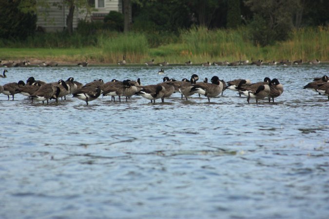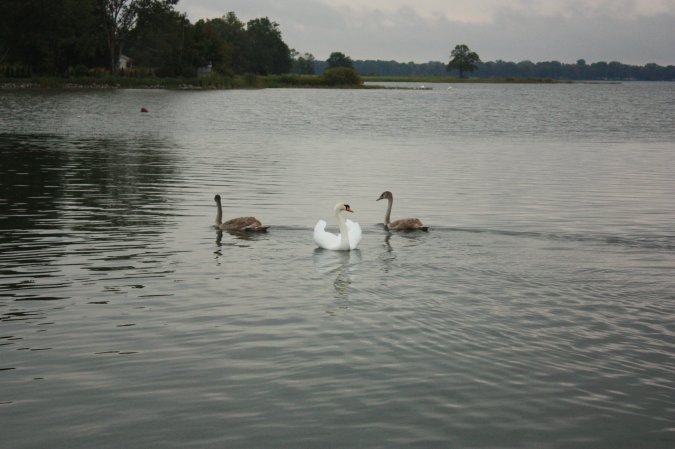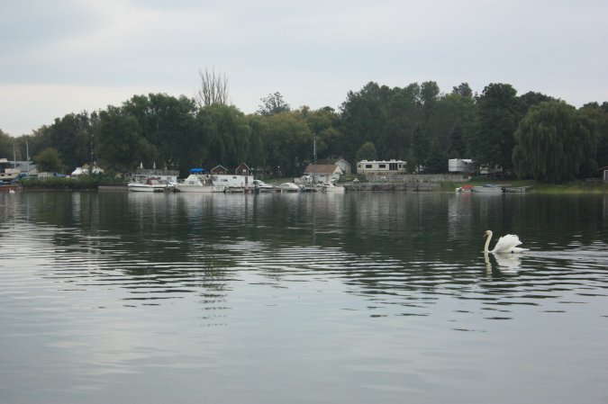 Ontario. About 26 swans spend time here on the bay, just feeding