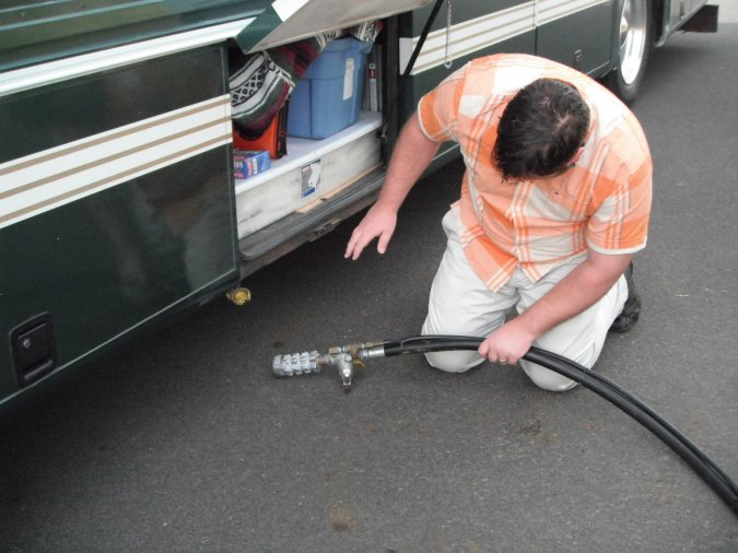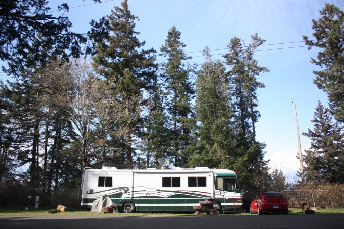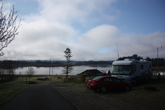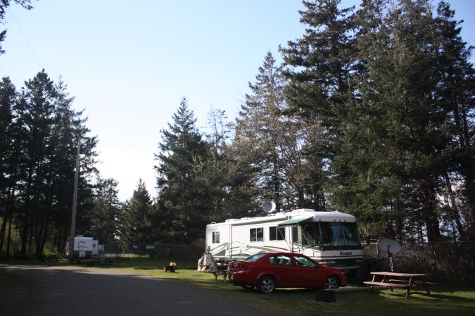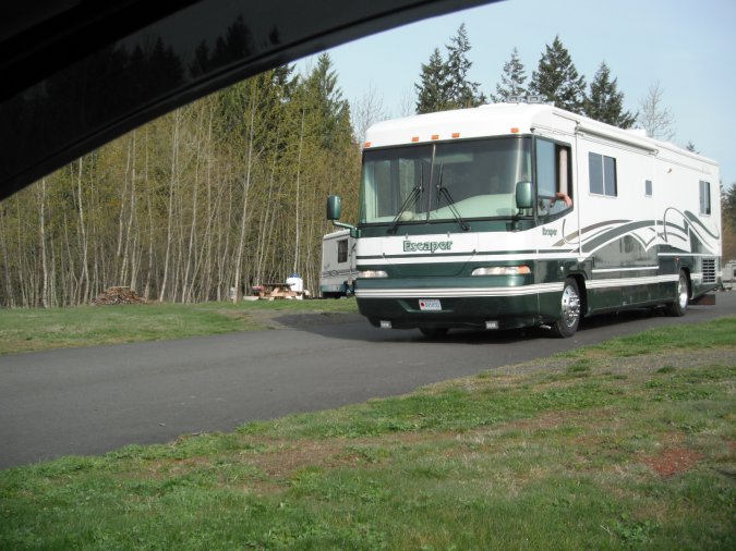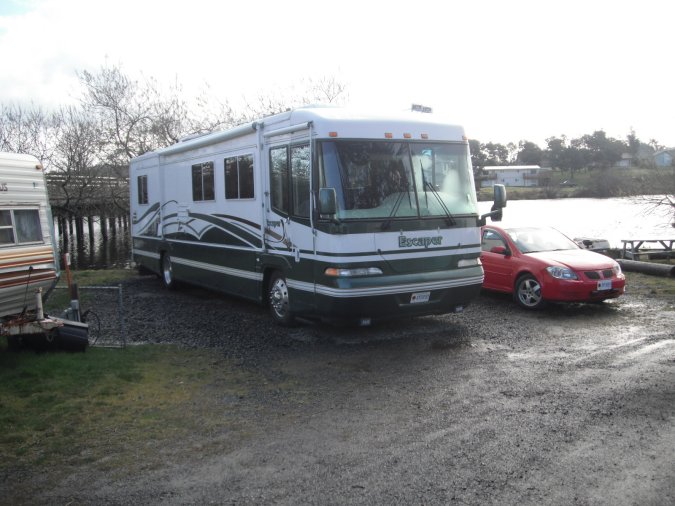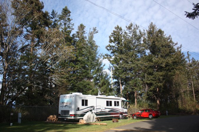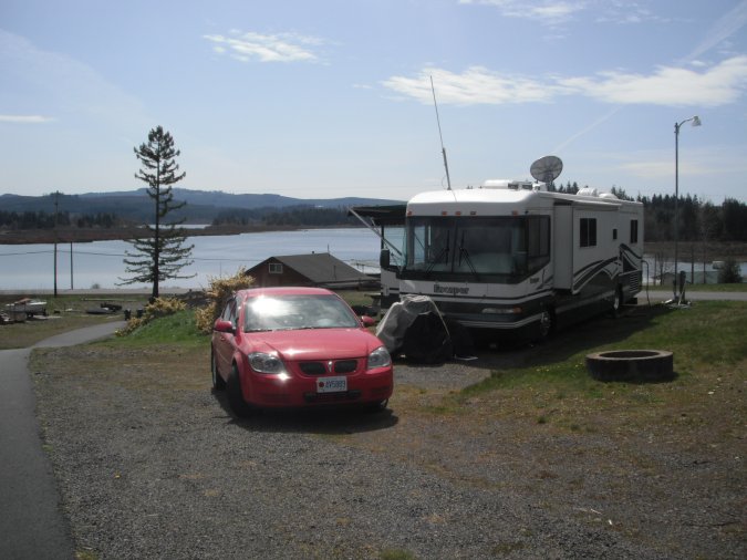 Our site with only 15 amp, water, but no sewer. Pretty trailer