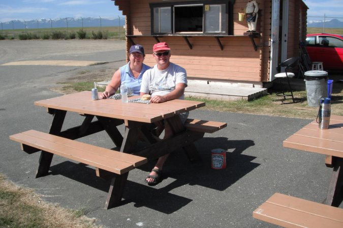 We take Danielle and Jérémy for a Poutine lunch at the snack-bar.