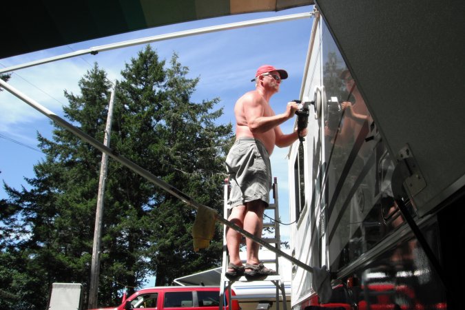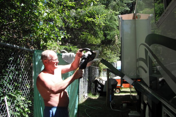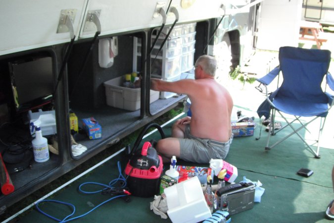 Cleaning the carpets and the tire covers. I cannot wait and do