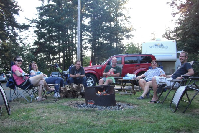 Jérémy, Danielle, Gabriel and Colleen are here for a nice campfire and