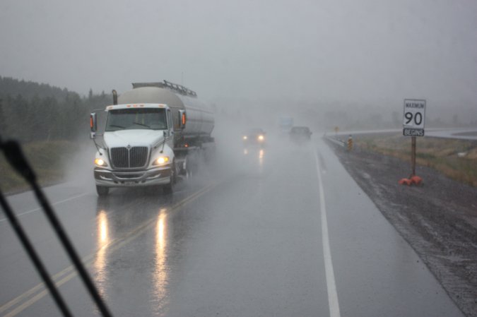 drive is done in the rain.