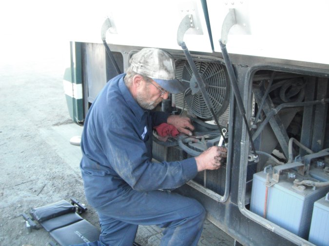 and there are people helping another truck. Both vehicle have