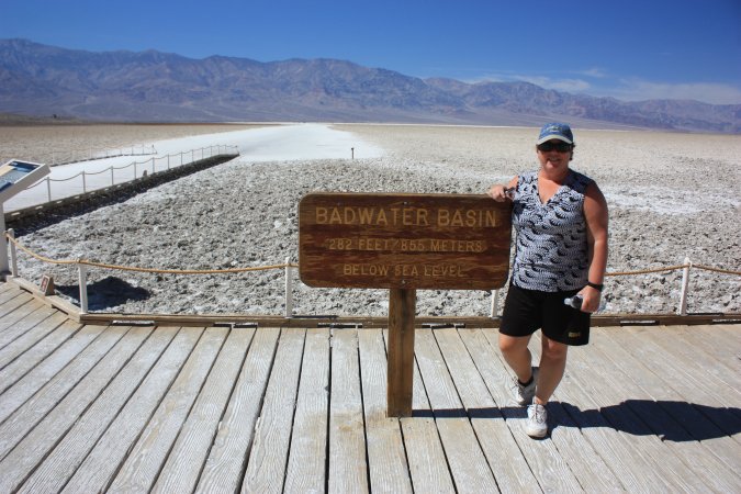 In Badwater, a nice +32 C. Badwater is the lowest point on the