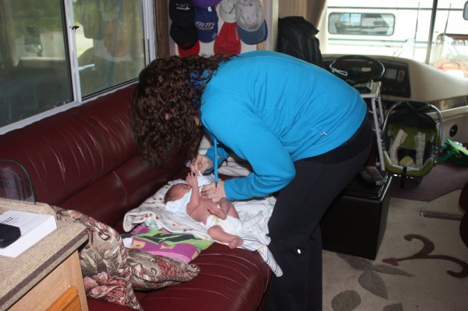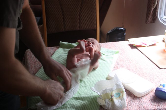 Back at the motorhome, Gabriel needs a diaper change and then it is