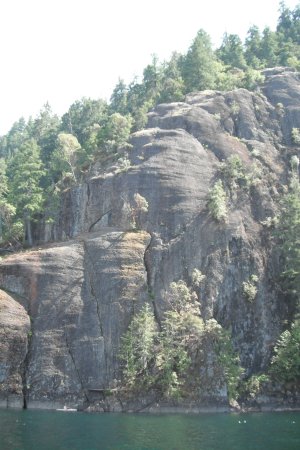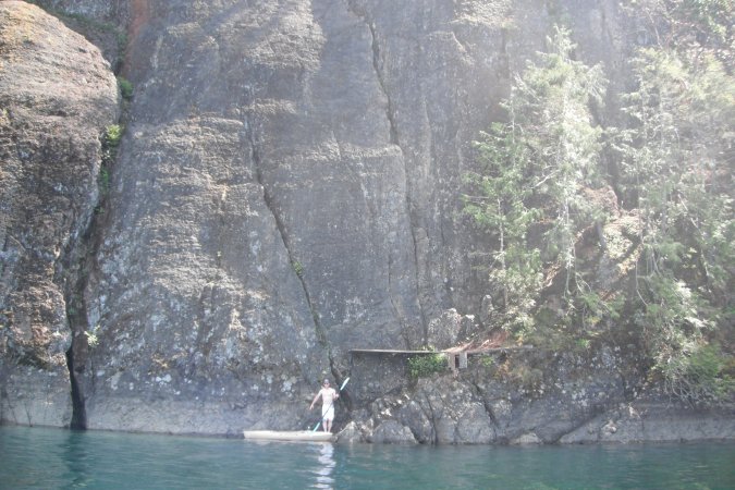 Can you see the beige kayak? This rock face is over 90 meters