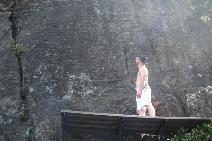 lake. This is also where he does some rock climbing with his
