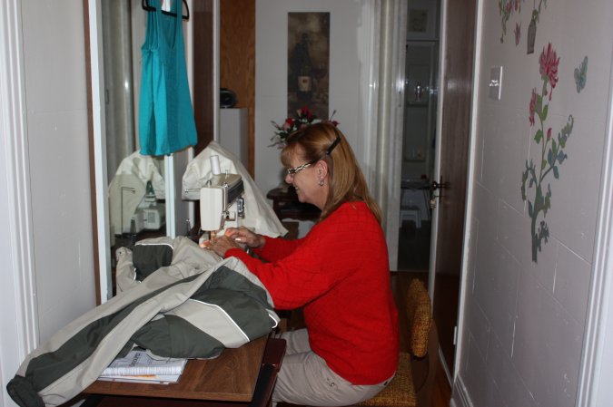 Another "blah" day weather wise. We put Christianne sewing skill