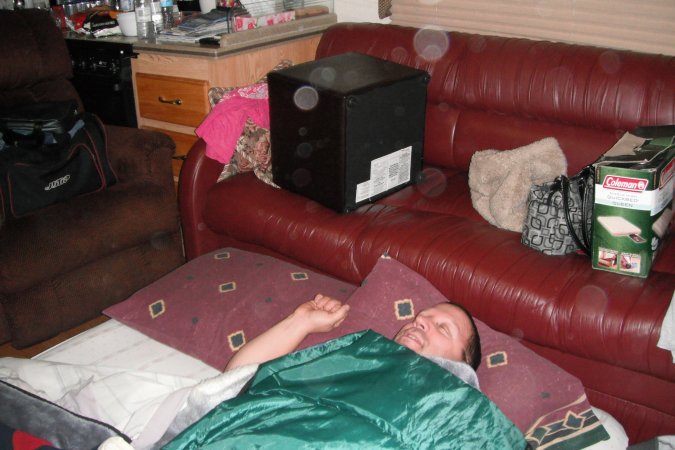 We had a great time with them. Patrice trying his new bed.