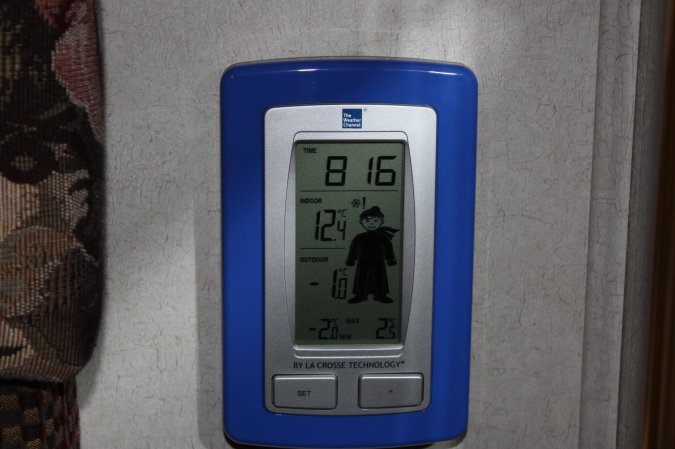 thermometer when I got up and noticed it was pretty cold last night, -2