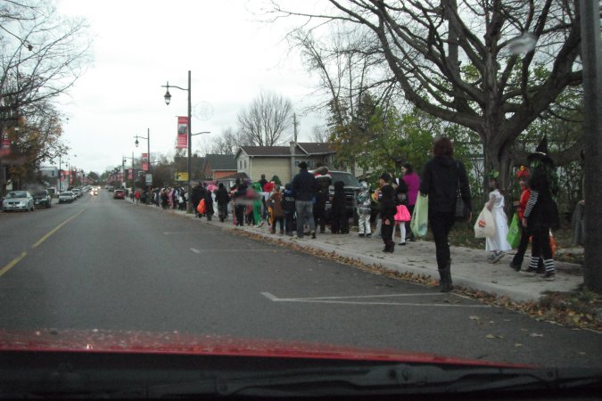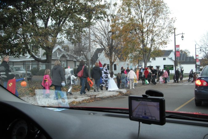 la cueillette des bonbons dans le centre du village, comme ça tous les