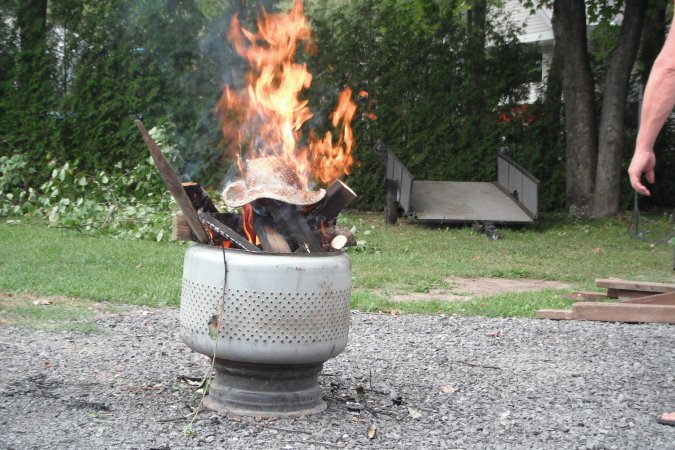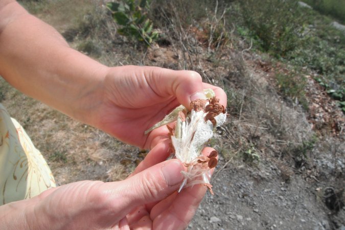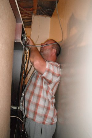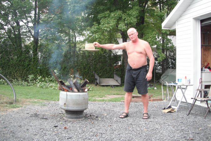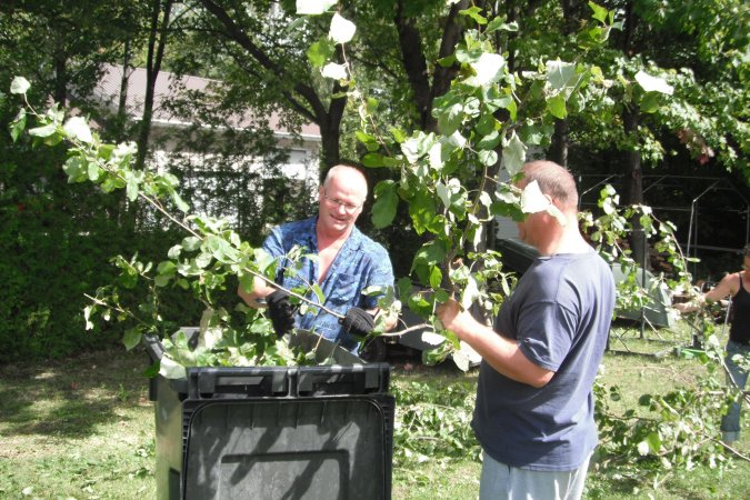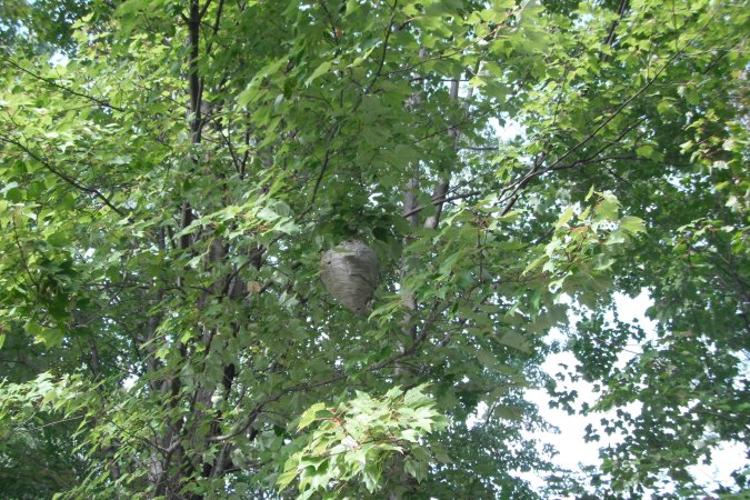 Patrice working hard, well, he is showing us the big wasp nest in one