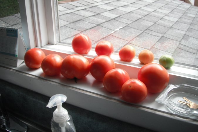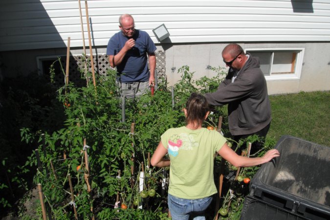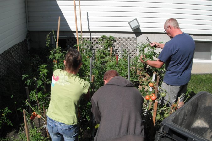 Manon bought quite a few tomatoes plant this spring. Each day we