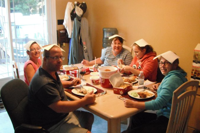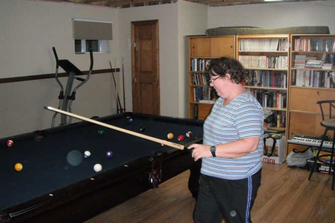 On our bike ride, we stopped at Jocelyne place to invite her for