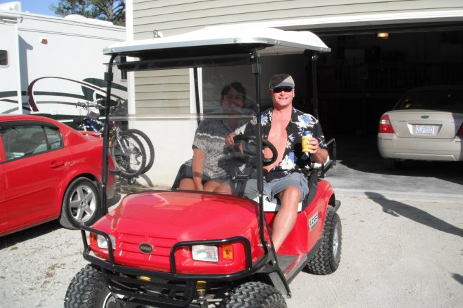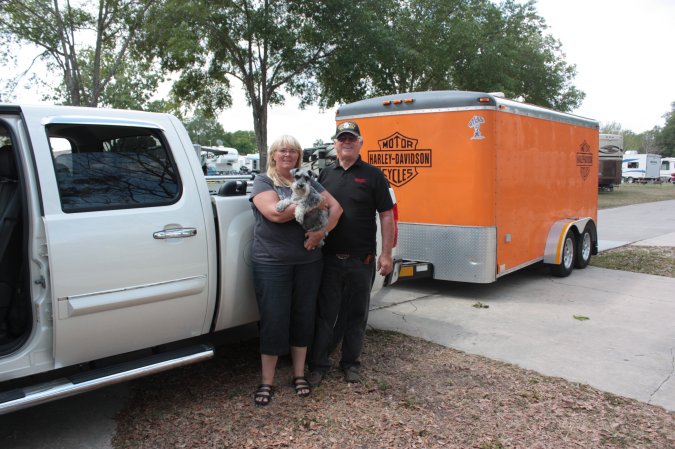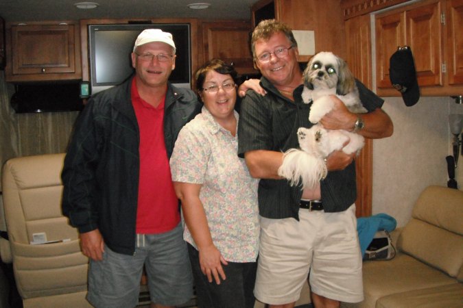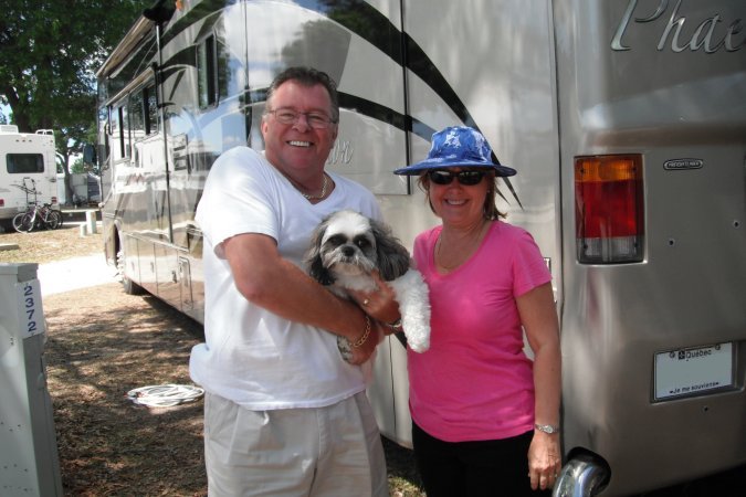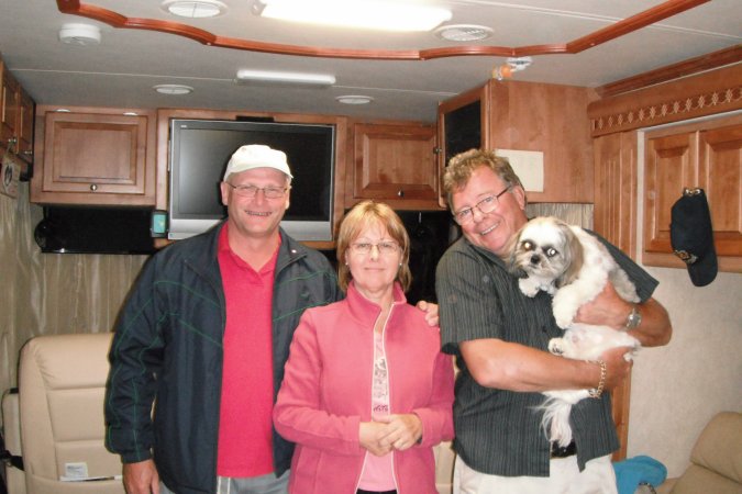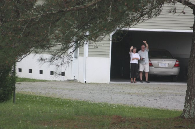 Our neighbor, Wayne, Janice and their dog Duchess, are driving back to