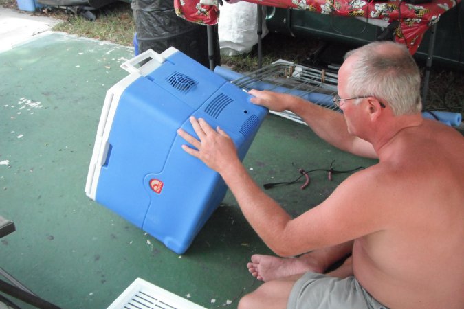 On my way home, somebody threw away a 12 volts cooler. Being me,