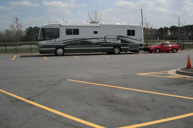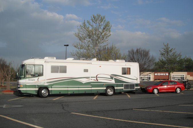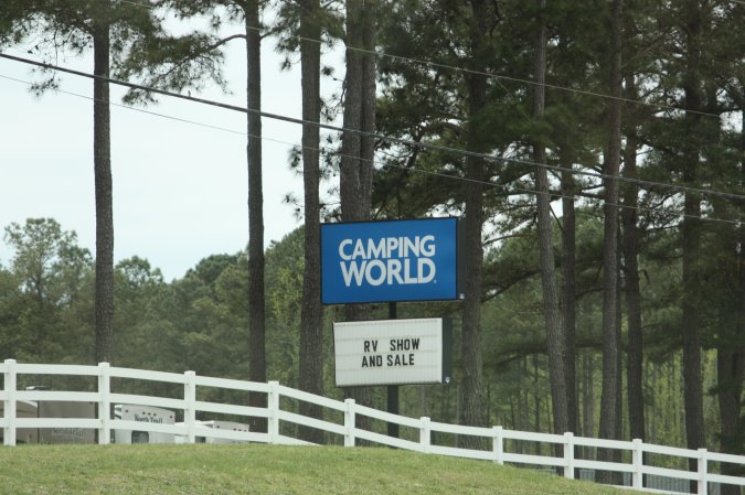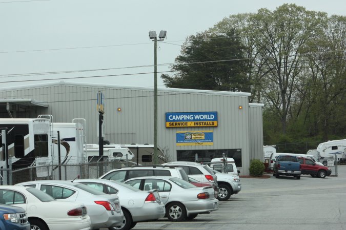 We stop in Raleigh's Camping World to check out used motorhomes.