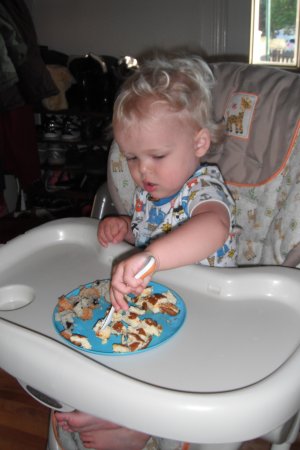 We play pick-a-boo and soon after, it is Gabriel who does the