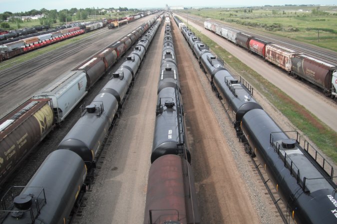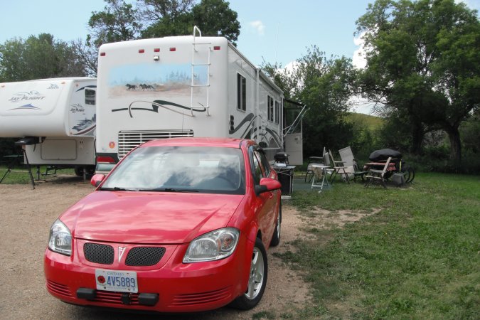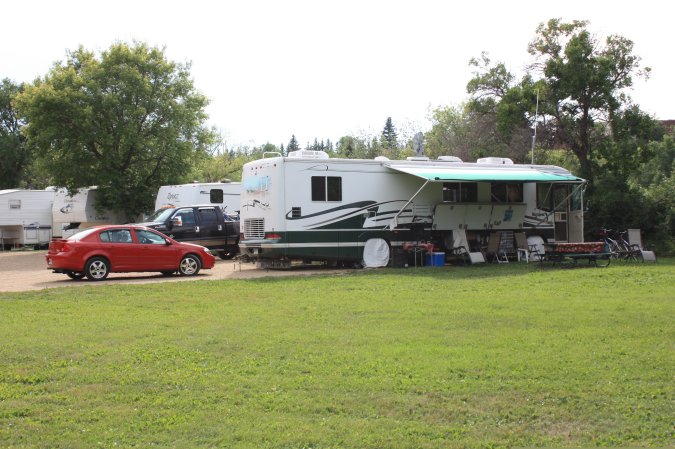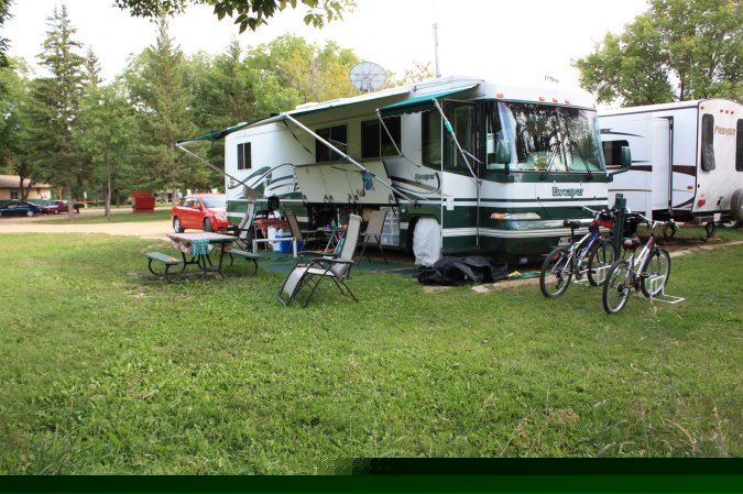 drive to Moose Jaw to pick up our motorhome and get set up at our