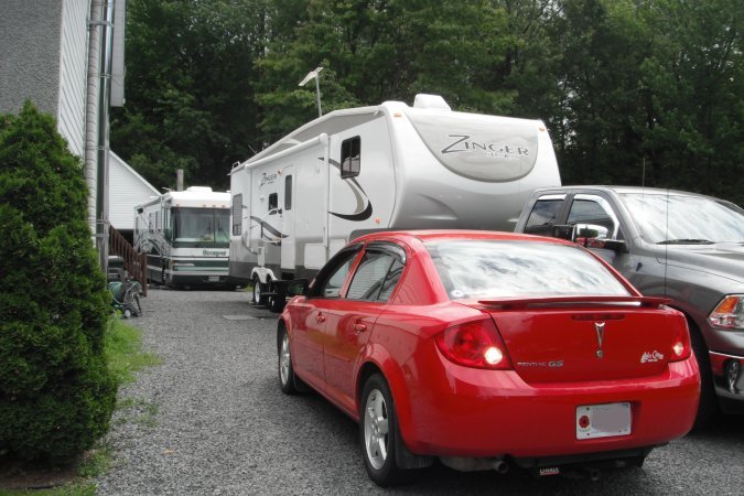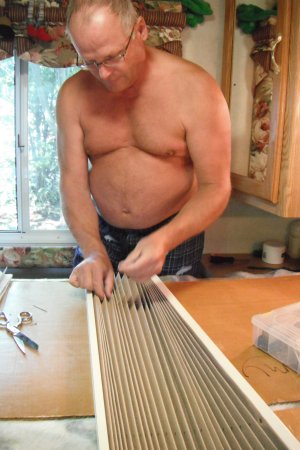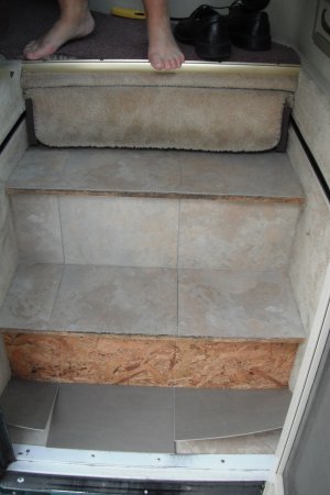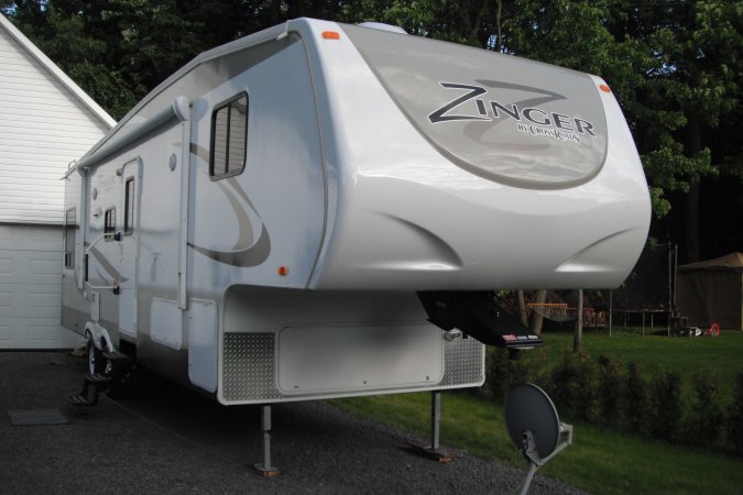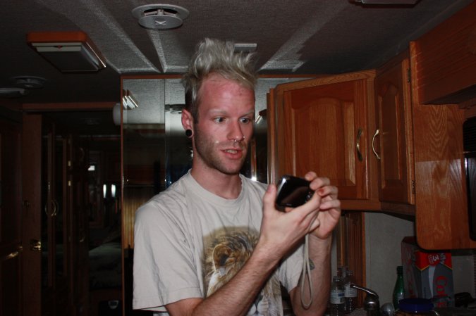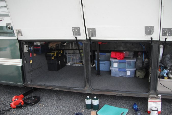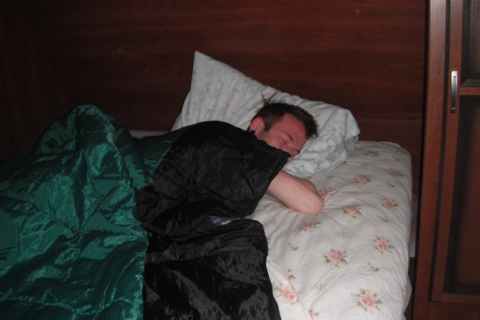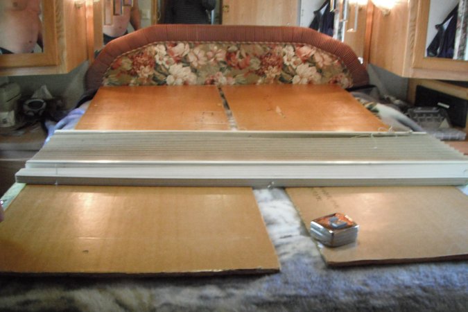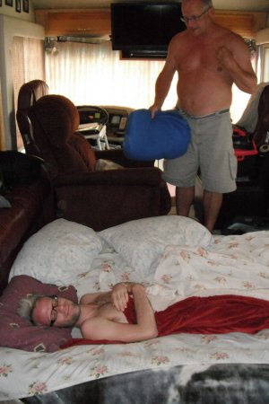 Benoit is the first one to sleep in the new fifth-wheel Patrice and