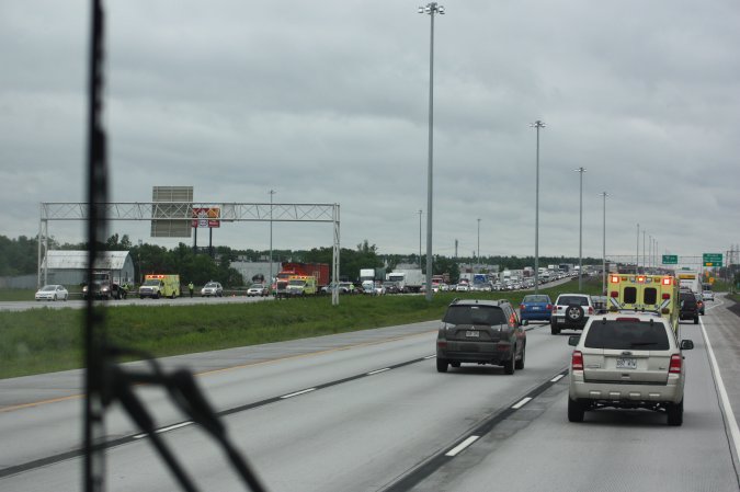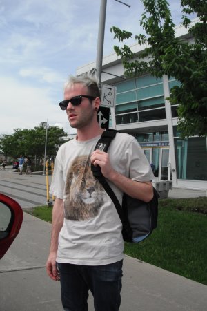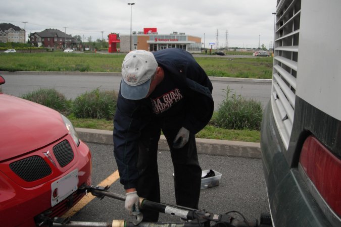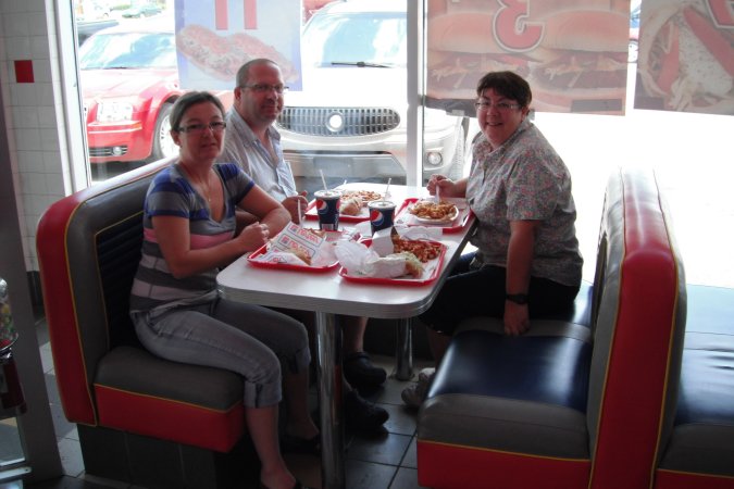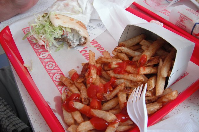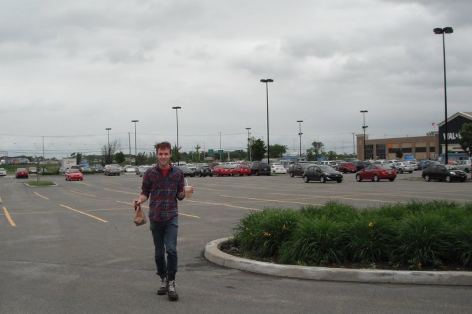 Back at the motorhome, Benoit picks up his lunch at MacDonald and I