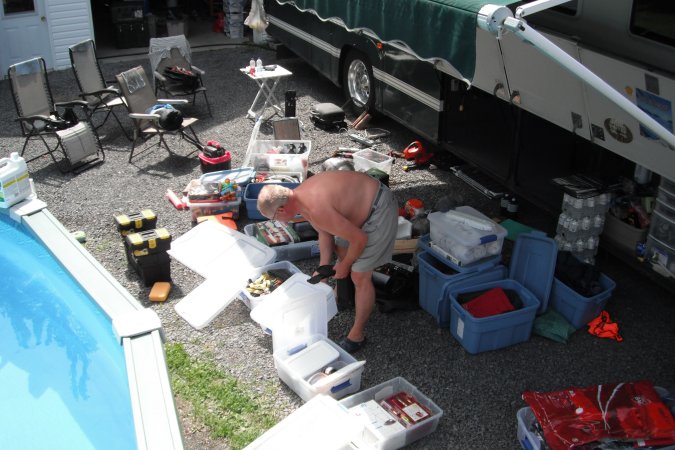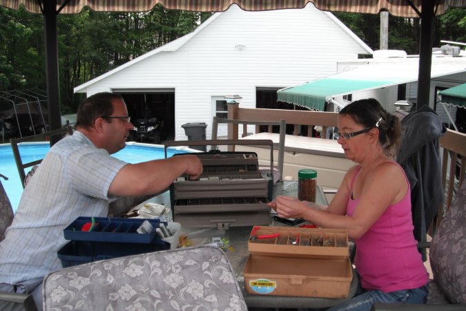 While I do this, Patrice and Manon are cleaning up their tackle box for