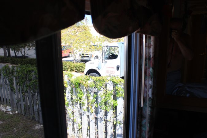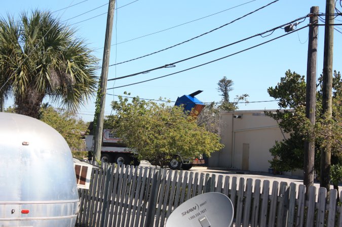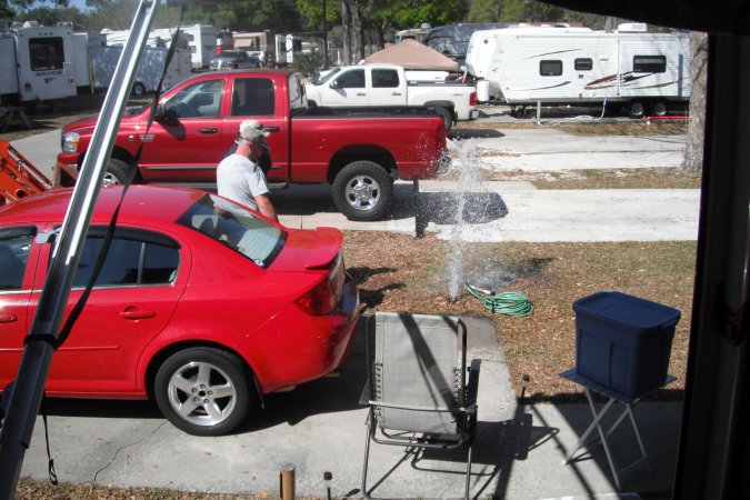 hear the noise from the garbage truck behind the motorhome at 6 in the