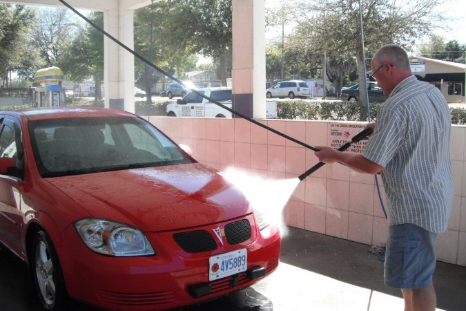 Once we are set-up, we have to wash the car from all the dirt/sand/dust