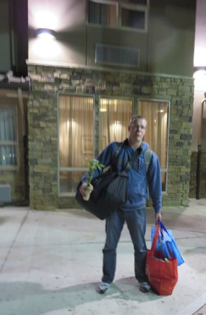 Just as we arrived at the motel, we saw Jeremy carrying some luggage to