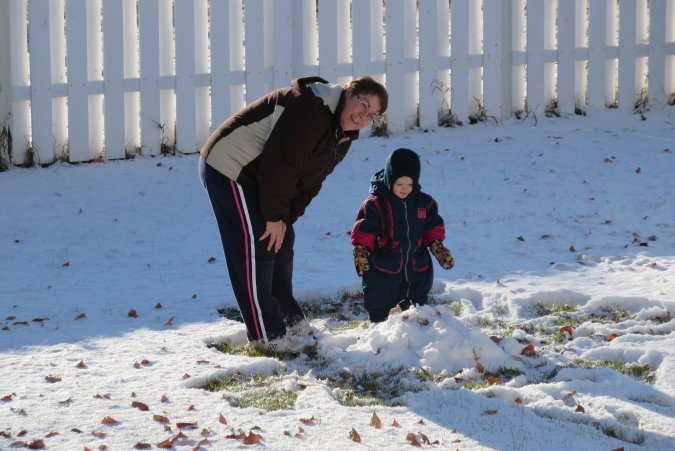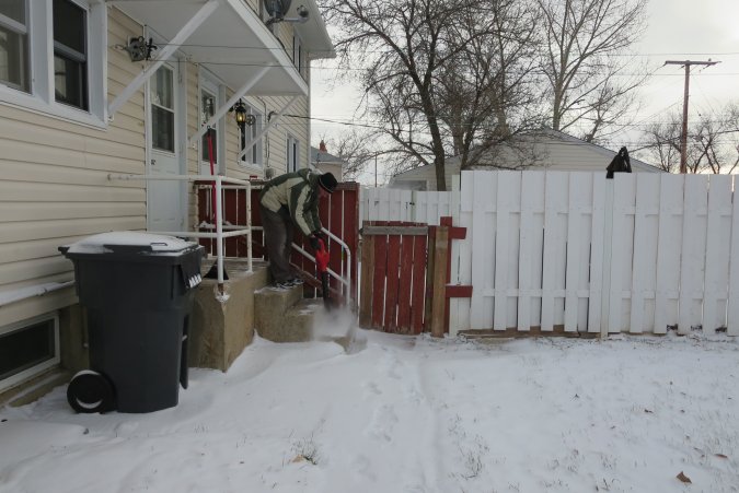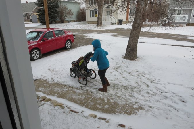 Michèle and I are busy cleaning up the sidewalk and the driveway.