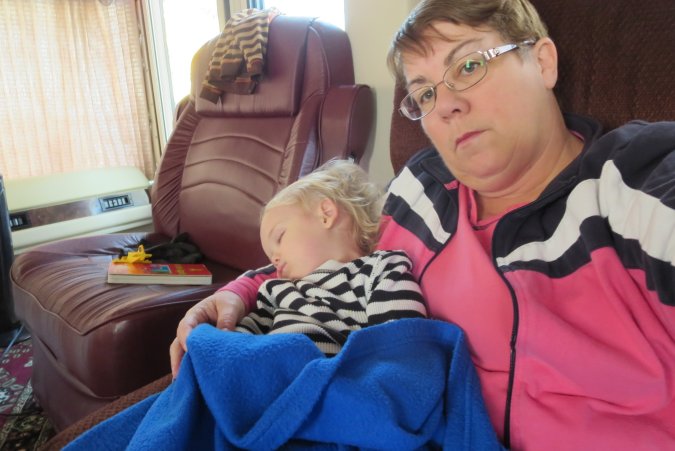 Michèle is back in the motorhome with Gabriel and Danielle is working