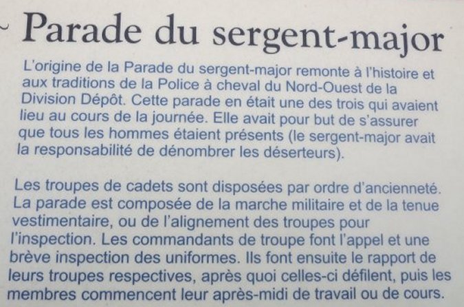 C'était bien. La parade du sergent-major a lieu 3 fois semaine,