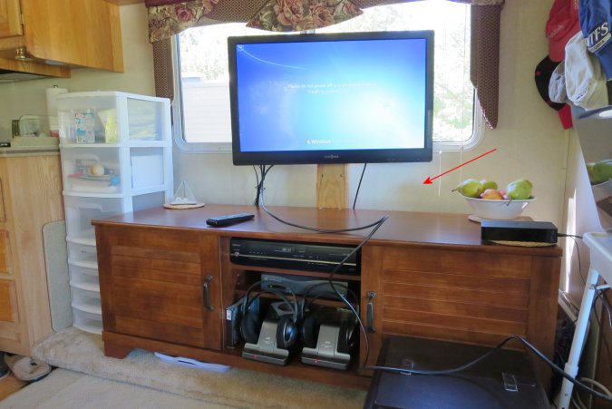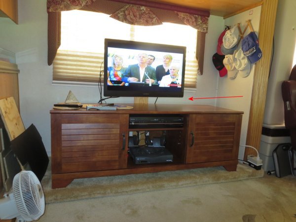 On the left, the TV sitting higher and on the right, where it was.