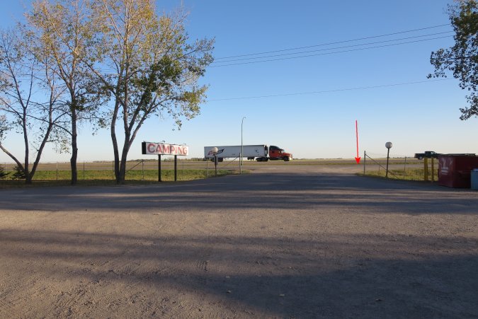 The arrow indicate the Transcanada highway and a transport truck going